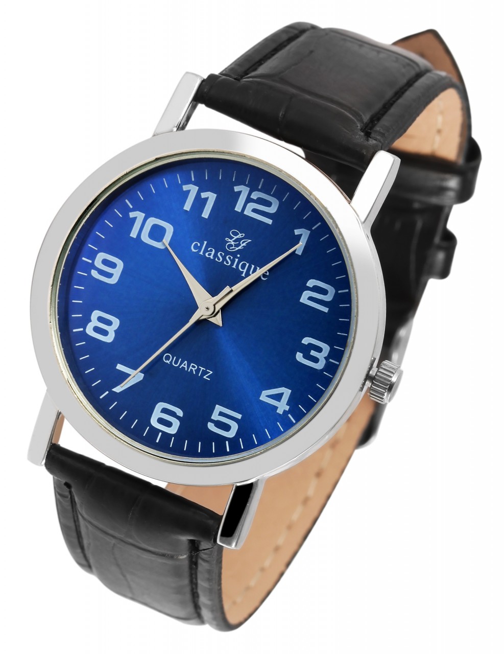 O relógio de pulso analógico masculino de 3 ponteiros da Classique possui um movimento de quartzo de alta qualidade. A pulseira em pele sintética tem 18 mm de largura na alça e estreita 2 mm, de modo que a alça do fecho tem 16 mm. A parte inferior da pulseira é feita de couro genuíno, o que a torna confortável de usar. O relógio pode ser aberto e fechado com uma fivela. O comprimento total do relógio é de 23,5 cm. A caixa de metal com vidro mineral tem um diâmetro de 31 mm e uma altura de 7,5 mm. O fundo da caixa é feito de aço inoxidável. O mostrador simples tem uma cor contrastante para que a hora possa ser lida rapidamente. O relógio é o acessório perfeito para qualquer roupa, pois o estilo clássico combina com qualquer ocasião.