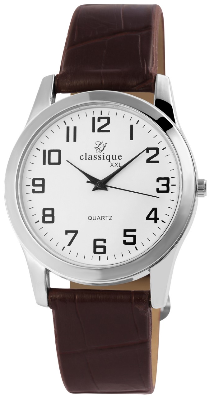 O relógio de pulso analógico masculino de 3 ponteiros da Classique possui um movimento de quartzo de alta qualidade. A pulseira em pele sintética tem 20 mm de largura na alça e estreita 2 mm, de modo que a alça do fecho tem 18 mm. O relógio pode ser aberto e fechado com uma fivela. O comprimento total do relógio é de 25 cm. A caixa de metal com vidro mineral tem um diâmetro de 40 mm e uma altura de 8 mm. O fundo da caixa é feito de aço inoxidável. O mostrador simples tem uma cor contrastante para que a hora possa ser lida rapidamente. O relógio é o acessório perfeito para qualquer roupa, pois o estilo clássico combina com qualquer ocasião.