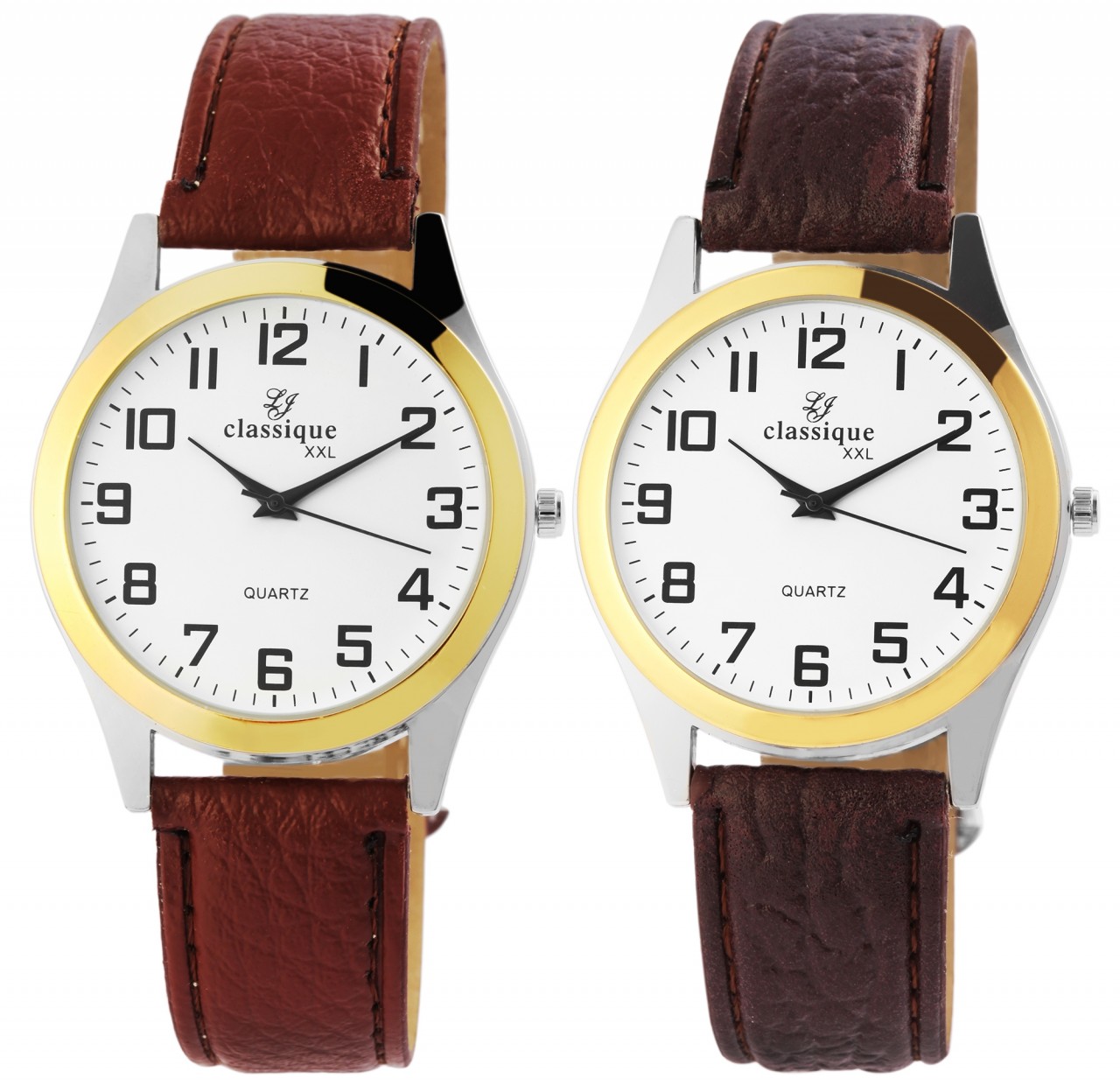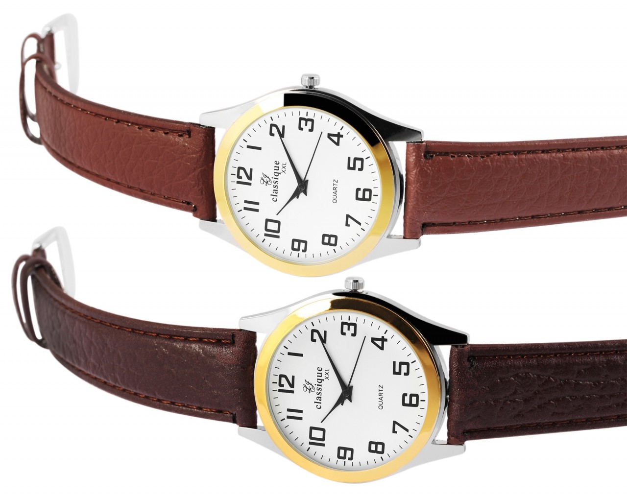 O relógio de pulso analógico masculino de 3 ponteiros da Classique possui um movimento de quartzo de alta qualidade. A pulseira em pele sintética tem 20 mm de largura na alça e estreita 2 mm, de modo que a alça do fecho tem 18 mm. O relógio pode ser aberto e fechado com uma fivela. O comprimento total do relógio é de 25 cm. A caixa de metal com vidro mineral tem um diâmetro de 40 mm e uma altura de 8 mm. O fundo da caixa é feito de aço inoxidável. O mostrador simples tem uma cor contrastante para que a hora possa ser lida rapidamente. O relógio é o acessório perfeito para qualquer roupa, pois o estilo clássico combina com qualquer ocasião.