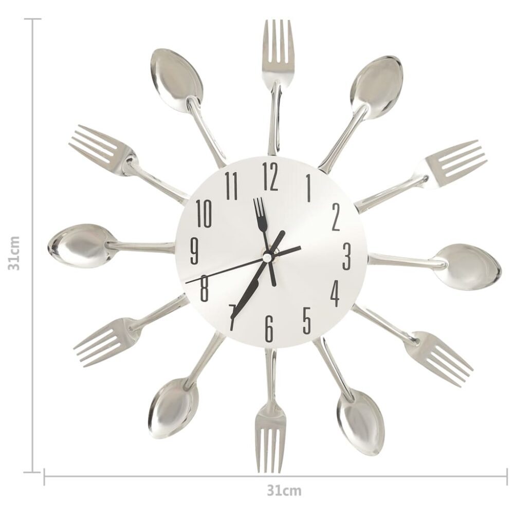Decore a sua cozinha ou área de refeições com este atraente relógio de parede. Este relógio de parede está decorado com garfos e colheres, o que o torna numa peça atraente para o seu interior. O mostrador do relógio está localizado no centro do círculo e apresenta números nítidos para que possa ver as horas com facilidade e rapidez.