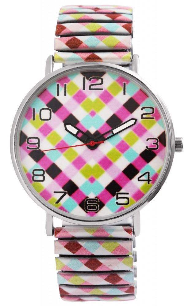 O relógio analógico feminino de 3 ponteiros com pulseira de aço inoxidável possui um movimento de quartzo de alta qualidade. A pulseira de puxar tem 20 mm de largura na extremidade e é particularmente fácil de puxar no pulso devido à pulseira flexível. Além disso, o relógio é muito confortável de usar devido à sua leveza e flexibilidade. O comprimento total do relógio é de 20,5 cm. O comprimento da pulseira pode ser ajustado para caber em qualquer pulso. A caixa de metal com vidro mineral tem um diâmetro de 42 mm e uma altura de 7,5 mm. O fundo da caixa é feito de aço inoxidável. O padrão da pulseira é refletido no mostrador e torna o relógio um atrativo completo. Os dois ponteiros são pretos e revestidos com Superluminova, para que as horas possam ser lidas mesmo no escuro.