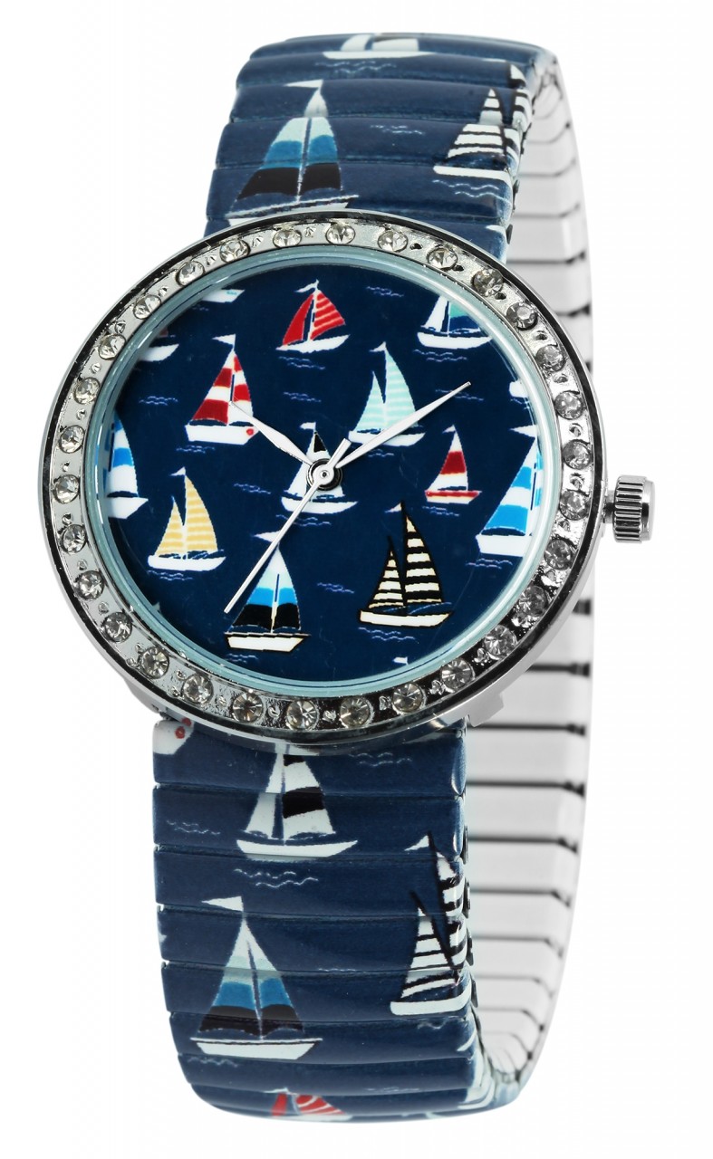 O relógio de pulso feminino analógico de 3 ponteiros da Donna Kelly possui um movimento de quartzo de alta qualidade. A pulseira de aço inoxidável tem 18 mm de largura na alça e é particularmente fácil de puxar no pulso devido à sua flexibilidade. Além disso, o relógio é muito confortável de usar devido à sua leveza e flexibilidade. O comprimento total do relógio é de 18,5 cm. O comprimento da pulseira pode ser ajustado para caber em qualquer pulso. A caixa de metal com moldura simili e vidro mineral tem um diâmetro de 33 mm e uma altura de 8 mm. O fundo da caixa é feito de aço inoxidável. Com o seu design marítimo, este relógio é o acessório perfeito para um look fashion e por isso um destaque em cada pulso.