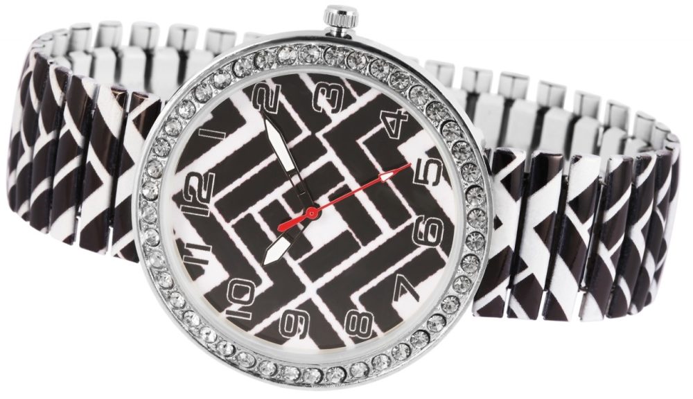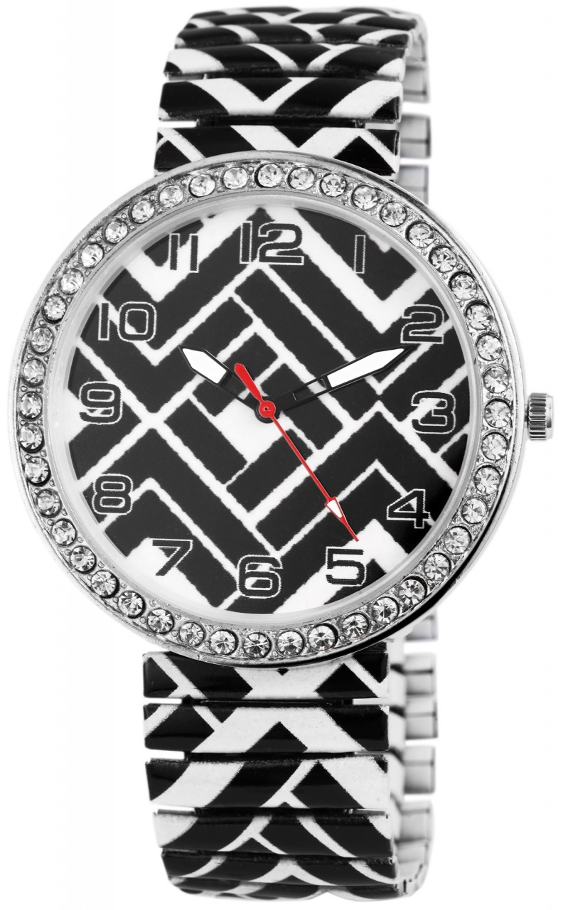 O relógio analógico feminino de 3 ponteiros com pulseira de aço inoxidável possui um movimento de quartzo de alta qualidade. A bracelete de puxar tem 20 mm de largura na extremidade e é particularmente fácil de puxar no pulso devido à bracelete flexível. Além disso, o relógio é muito confortável de usar devido à sua leveza e flexibilidade. O comprimento total do relógio é de 19 cm. O comprimento da bracelete pode ser ajustado para caber em qualquer pulso. A caixa de metal com vidro mineral tem um diâmetro de 42 mm e uma altura de 9 mm. O fundo da caixa é feito de aço inoxidável. O padrão da bracelete é refletido no mostrador e torna o relógio um atrativo completo. Além disso, a luneta é toda decorada com pedras simili brilhantes.