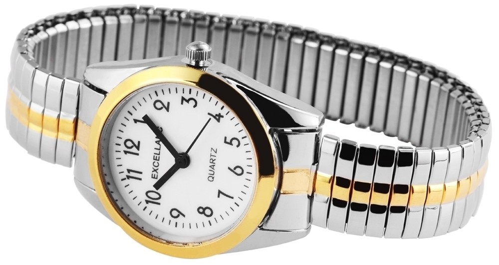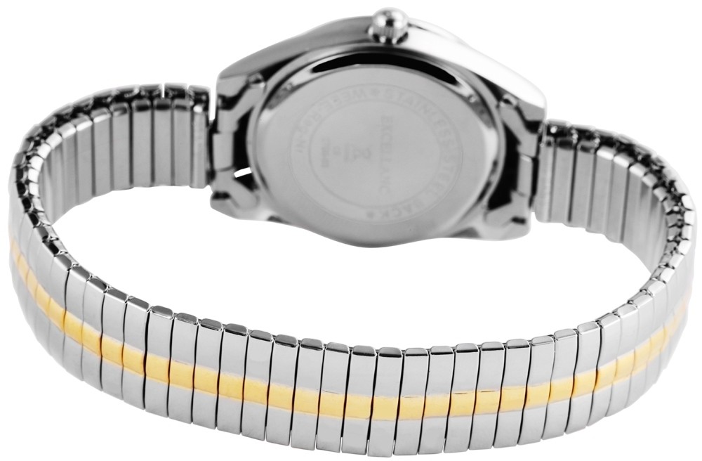 O relógio de pulso analógico de 3 ponteiros para senhora da Excellanc possui um movimento de quartzo de alta qualidade. A pulseira de aço inoxidável tem 13 mm de largura na alça e pode ser puxada de maneira particularmente confortável e fácil sobre o pulso, graças à pulseira flexível. O comprimento total do relógio é de 18 cm. A caixa de metal com vidro mineral tem um diâmetro de 28 mm e uma altura de 7,5 mm. O fundo da caixa é feito de aço inoxidável. Graças ao mostrador simples e à divisão clara, a hora pode ser lida rapidamente.