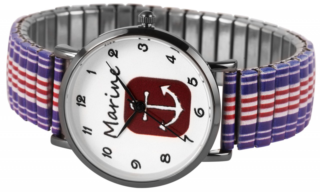 O relógio de pulso analógico de 3 ponteiros para senhora da Excellanc possui um movimento de quartzo de alta qualidade. A pulseira de aço inoxidável tem 16 mm de largura na alça e é particularmente fácil de puxar no pulso devido à sua flexibilidade. Além disso, o relógio é muito confortável de usar devido à sua leveza e flexibilidade. O comprimento total do relógio é de 18 cm. O comprimento da pulseira pode ser ajustado para caber em qualquer pulso. A caixa de metal com vidro mineral tem um diâmetro de 32 mm e uma altura de 8 mm. O fundo da caixa é feito de aço inoxidável. Com o seu design marítimo, este relógio é o acessório perfeito para um look fashion e por isso um destaque em cada pulso.
