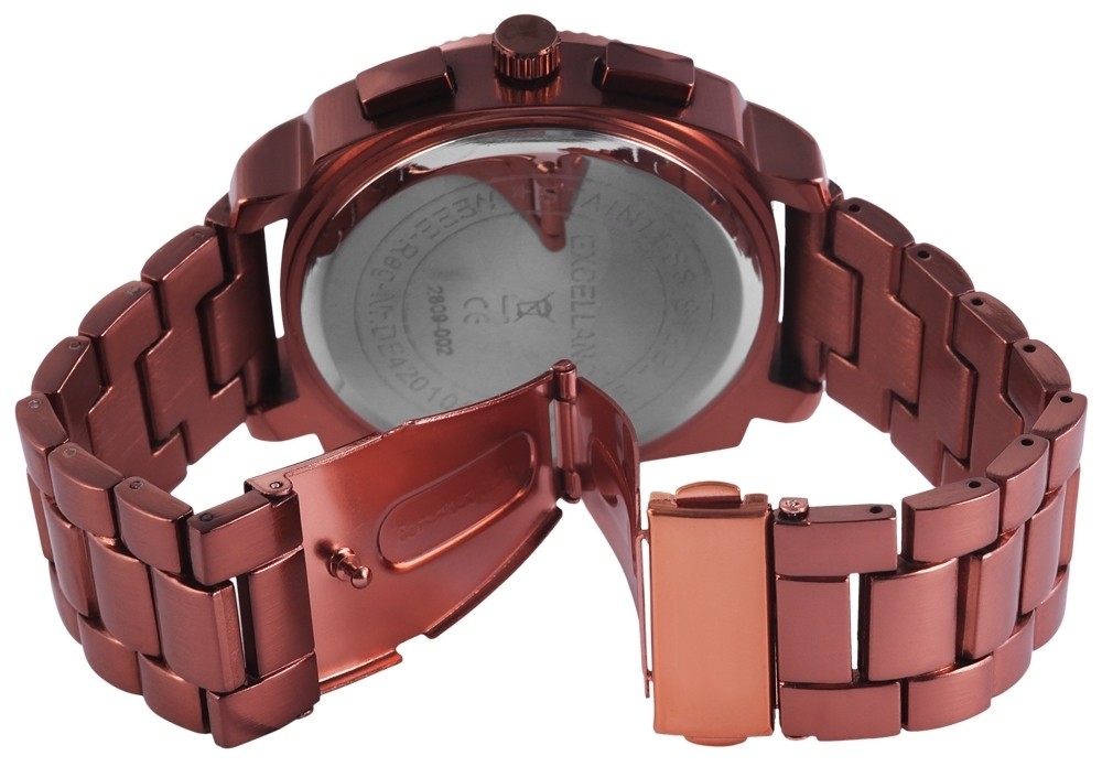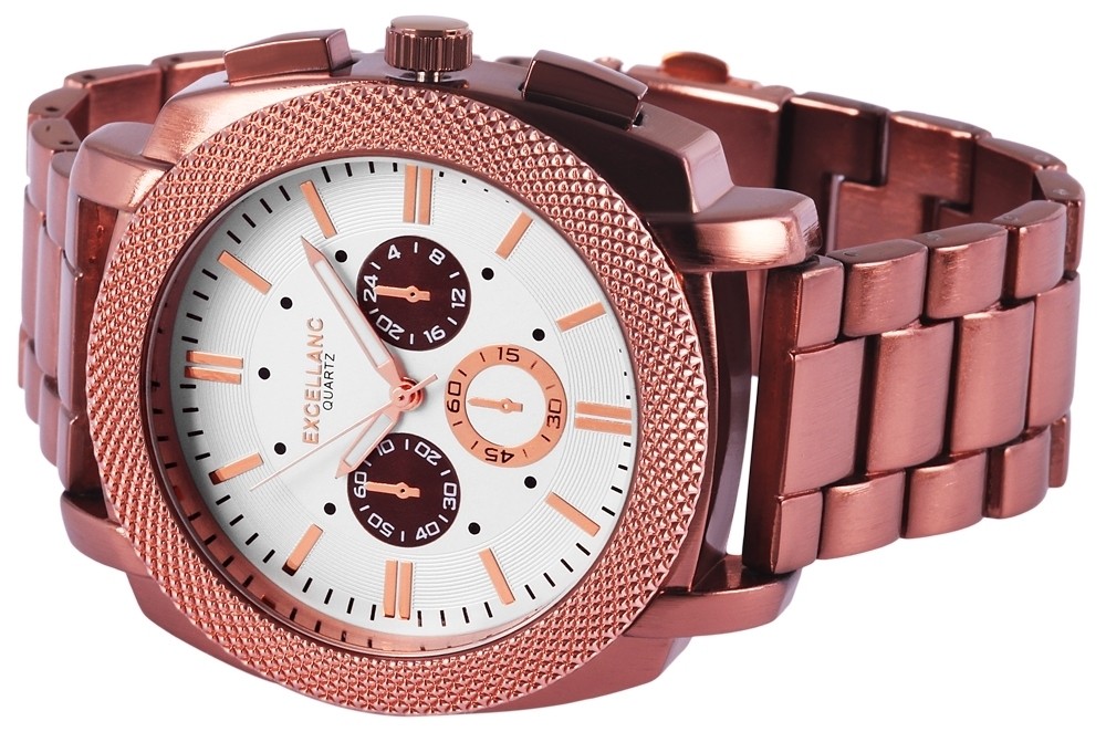O relógio analógico para homem da marca Excellanc possui um movimento de quartzo de alta qualidade. A bracelete metálica tem 24 mm de largura e abre-se com um fecho desdobrável em aço inoxidável. O comprimento total é de 21 cm. A caixa metálica com vidro mineral mede 44 mm e tem 12 mm de altura. A tampa da caixa é feita de aço inoxidável.