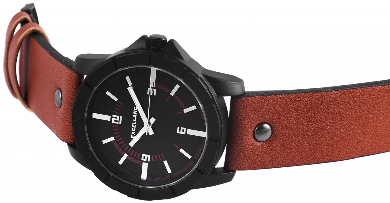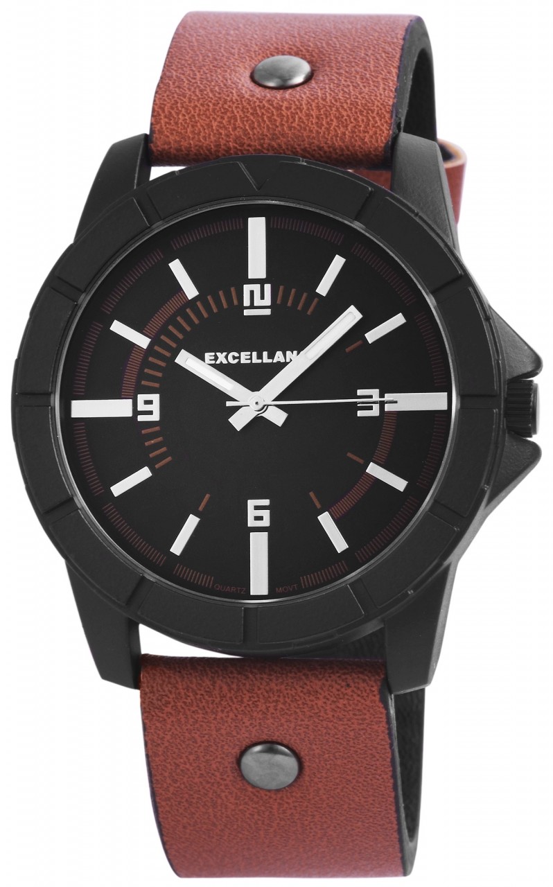 Relógio analógico masculino de 3 ponteiros da Excellanc. Este relógio possui um movimento de quartzo de alta qualidade. Os ponteiros revestidos com Superluminova permitem ler as horas no escuro. O mostrador de alto contraste permite uma leitura rápida da hora. A caixa preta tem diâmetro de 47 mm e altura de 11 mm. O mostrador cinza com índice prateado é protegido de influências externas por um vidro mineral. O fundo da caixa é feito de aço inoxidável. O comprimento total do relógio é de 20 cm. A pulseira do relógio tem uma largura de 24 mm na alça. O relógio de pulso masculino é fechado com uma fivela. Pode ser combinado com qualquer estilo de roupa, este relógio é um acessório adequado para qualquer ocasião. O relógio também é ideal como presente.