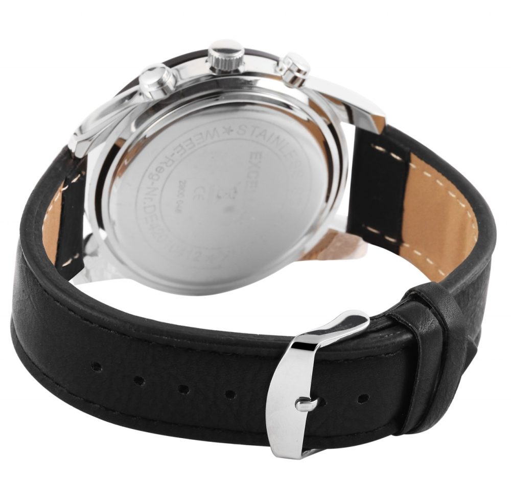 Este elegante relógio analógico masculino com visual crono possui um movimento de quartzo de alta qualidade. Observe que os detalhes no mostrador são apenas para fins de design e não possuem outras funções. Os ponteiros luminescentes permitem ler as horas mesmo no escuro. O comprimento total do relógio é de aproximadamente 24 cm. A pulseira de 22 mm de largura fecha com uma fivela de pino. A caixa tem um diâmetro de 46 mm e uma altura de 12 mm. O vidro mineral protege o mostrador de influências externas. No geral, este relógio é um ótimo companheiro para o dia a dia. Seja para uma reunião de negócios ou para uma festa, há sempre um acessório adequado para cada ocasião. Este relógio é ideal como presente para homens. Seja para o Dia dos Pais, aniversário, aniversário de casamento ou Natal.