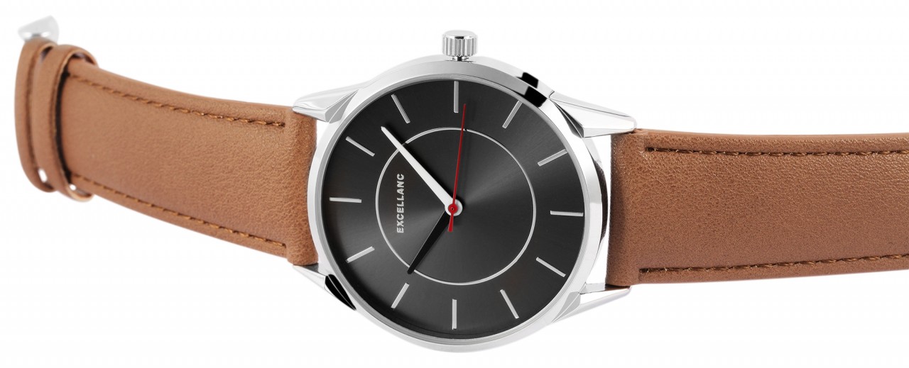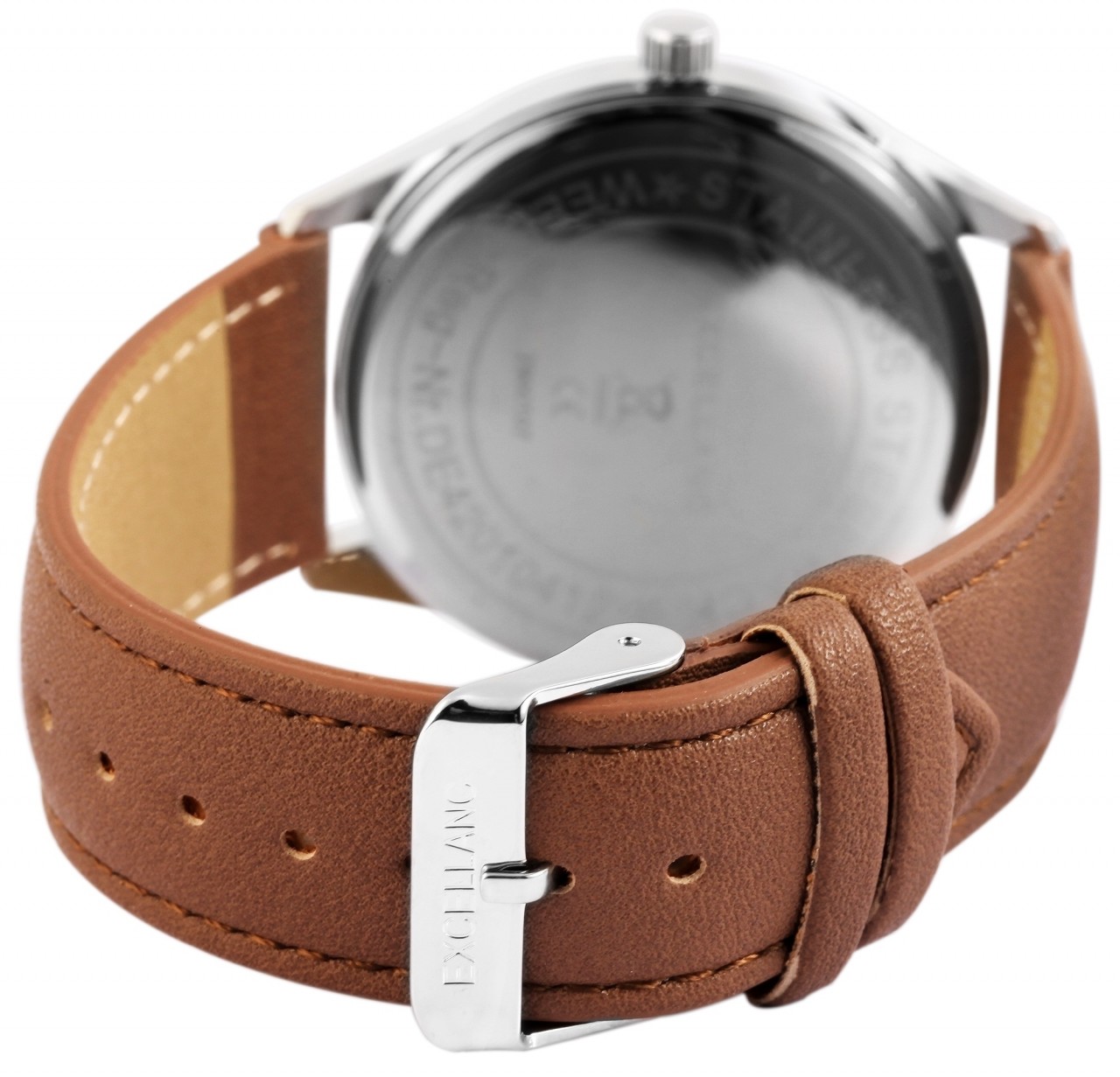 O relógio analógico feminino da Excellanc possui um movimento de quartzo de alta qualidade. A pulseira em imitação de couro tem 22 mm de largura e abre com uma fivela. A caixa de metal com vidro mineral tem dimensão de 42 mm e altura de caixa de 8 mm. A tampa da caixa é feita de aço inoxidável.