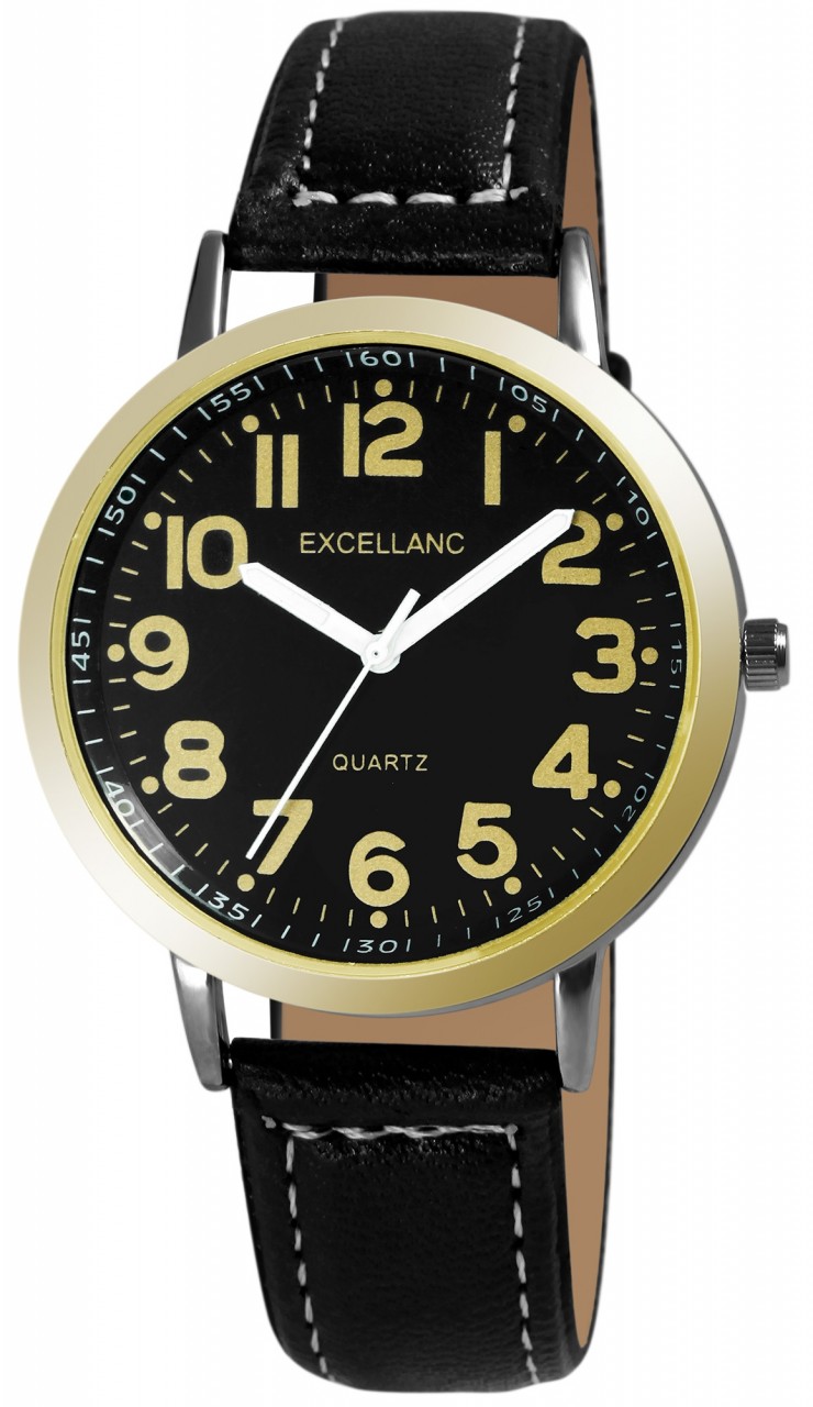 O relógio de pulso analógico de 3 ponteiros para homem da Excellanc possui um movimento de quartzo preciso e de alta qualidade. A pulseira em imitação de couro tem 18 mm de largura nas alças e pode ser aberta e fechada com uma fivela. A pulseira do relógio garante conforto de uso ideal e cabe confortavelmente no pulso. O comprimento total do relógio é de 24 cm. A caixa de metal com vidro mineral tem um diâmetro de 38,5 mm e uma altura de 7,5 mm. A hora pode ser lida facilmente graças ao mostrador transparente com grandes números em estilo árabe. Graças aos ponteiros revestidos com Superluminova, isto também é possível no escuro. Graças à sua silhueta esbelta, este relógio masculino cabe sob qualquer manga de camisa e pode ser usado idealmente para uma reunião de negócios, mas também como um relógio básico na vida cotidiana.