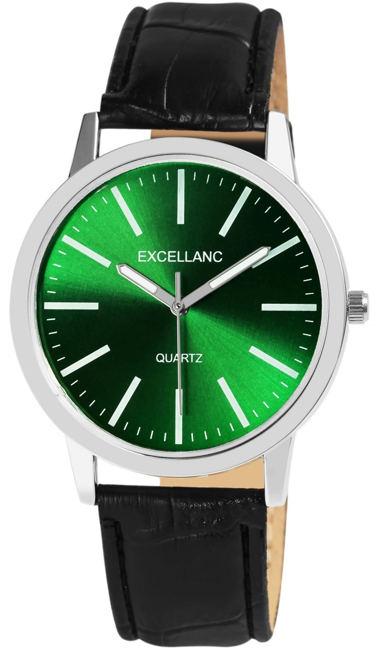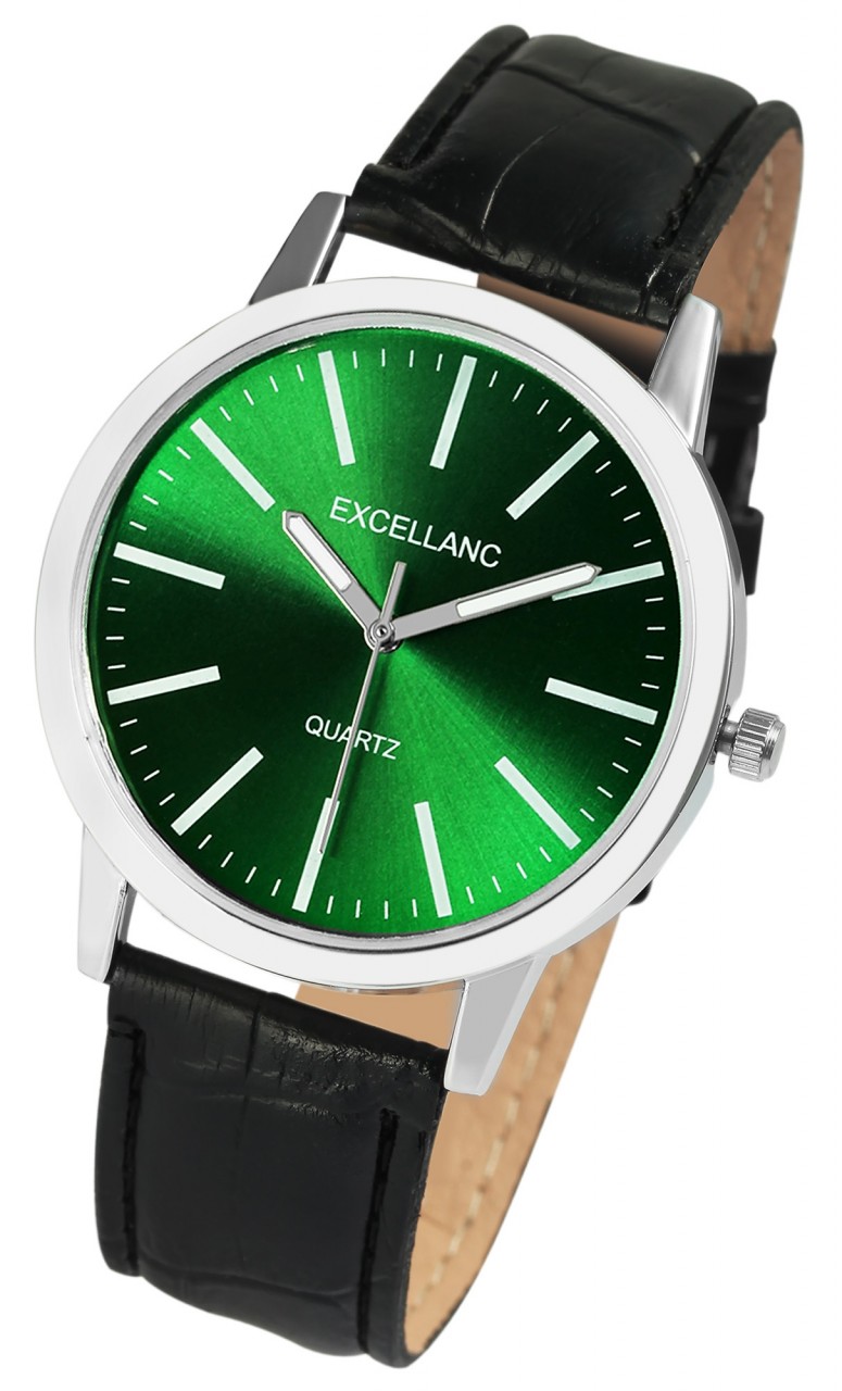 O relógio de pulso analógico de 3 ponteiros para homem da Excellanc possui um movimento de quartzo preciso e de alta qualidade. A pulseira em imitação de pele com relevo tem 20 mm de largura nas alças e pode ser aberta e fechada com uma fivela de alfinete. A pulseira levemente acolchoada garante conforto de uso ideal e se ajusta confortavelmente ao seu pulso. O comprimento total do relógio é de 24,5 cm. A caixa de metal com vidro mineral tem um diâmetro de 40 mm e uma altura de 7 mm. A hora pode ser lida facilmente graças ao mostrador transparente com divisão de índice de linha. Graças aos ponteiros revestidos com Superluminova, isto também é possível no escuro. Graças à sua silhueta esbelta, este relógio masculino cabe sob qualquer manga de camisa e pode ser usado idealmente para uma reunião de negócios, mas também como um relógio básico na vida cotidiana.