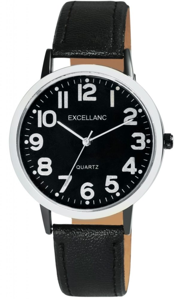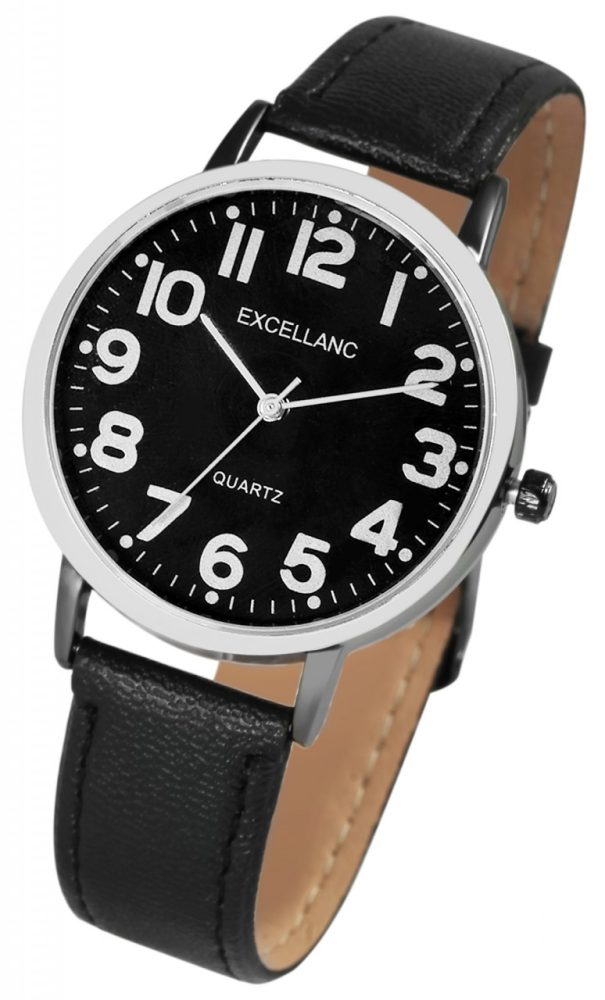 O relógio de pulso analógico de 3 ponteiros para homem da Excellanc possui um movimento de quartzo preciso e de alta qualidade. A pulseira em imitação de couro tem 18 mm de largura nas alças e pode ser aberta e fechada com uma fivela. A pulseira do relógio garante um ajuste confortável e cabe confortavelmente no seu pulso. O comprimento total do relógio é de 24 cm. A caixa de metal com vidro mineral tem um diâmetro de 39 mm e uma altura de 7 mm. A hora pode ser lida facilmente graças ao mostrador transparente com grandes números em estilo árabe. Graças à sua silhueta esbelta, este relógio masculino cabe sob qualquer manga de camisa e pode ser usado idealmente para uma reunião de negócios, mas também como um relógio básico na vida cotidiana.