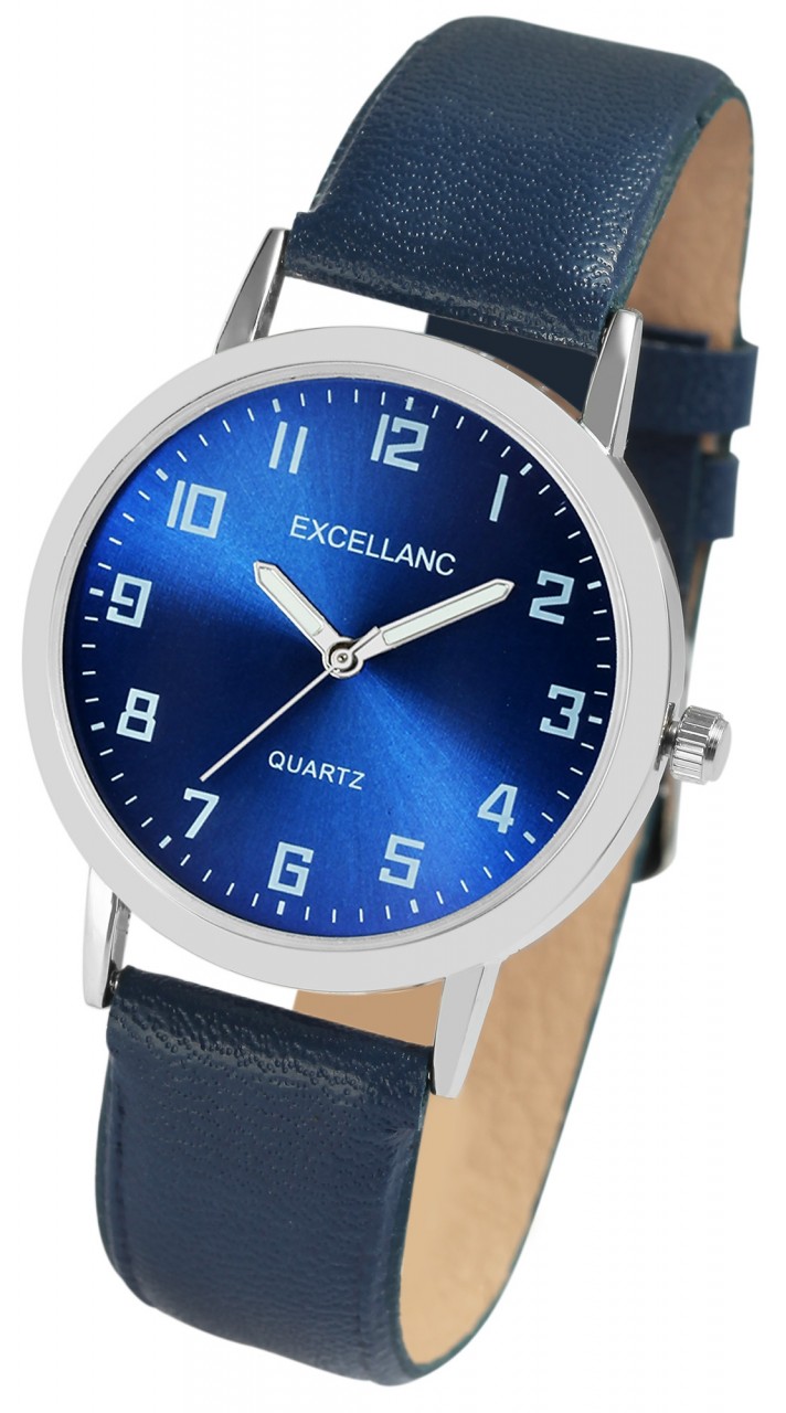 O relógio de pulso analógico de 3 ponteiros para homem da Excellanc possui um movimento de quartzo preciso e de alta qualidade. A pulseira em imitação de couro tem 18 mm de largura nas alças e pode ser aberta e fechada com uma fivela. A pulseira do relógio garante conforto de uso ideal e cabe confortavelmente no pulso. O comprimento total do relógio é de 23,5 cm. A caixa de metal com vidro mineral tem um diâmetro de 35 mm e uma altura de 7 mm. A hora pode ser lida facilmente graças ao mostrador claro com números em estilo árabe. Graças aos ponteiros revestidos com Superluminova, isto também é possível no escuro. Graças à sua silhueta esbelta, este relógio masculino cabe sob qualquer manga de camisa e pode ser usado idealmente para uma reunião de negócios, mas também como um relógio básico na vida cotidiana.