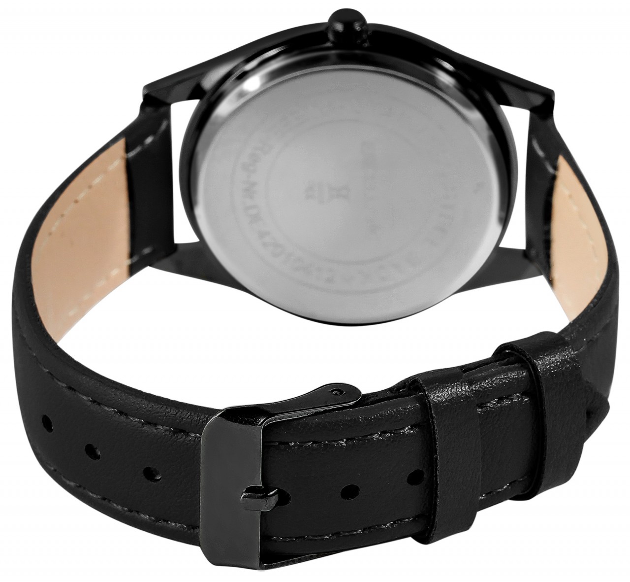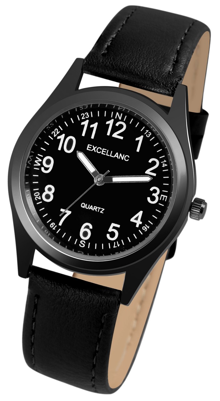 O relógio de pulso analógico de 3 ponteiros para homem da Excellanc possui um movimento de quartzo preciso e de alta qualidade. A pulseira em imitação de couro tem 18 mm de largura nas alças e pode ser aberta e fechada com uma fivela. A pulseira do relógio garante conforto de uso ideal e cabe confortavelmente no pulso. O comprimento total do relógio é de 24 cm. A caixa de metal com vidro mineral tem um diâmetro de 35 mm e uma altura de 7 mm. A hora pode ser lida facilmente graças ao mostrador claro com números em estilo árabe. Graças aos ponteiros revestidos com Superluminova, isto também é possível no escuro. Graças à sua…