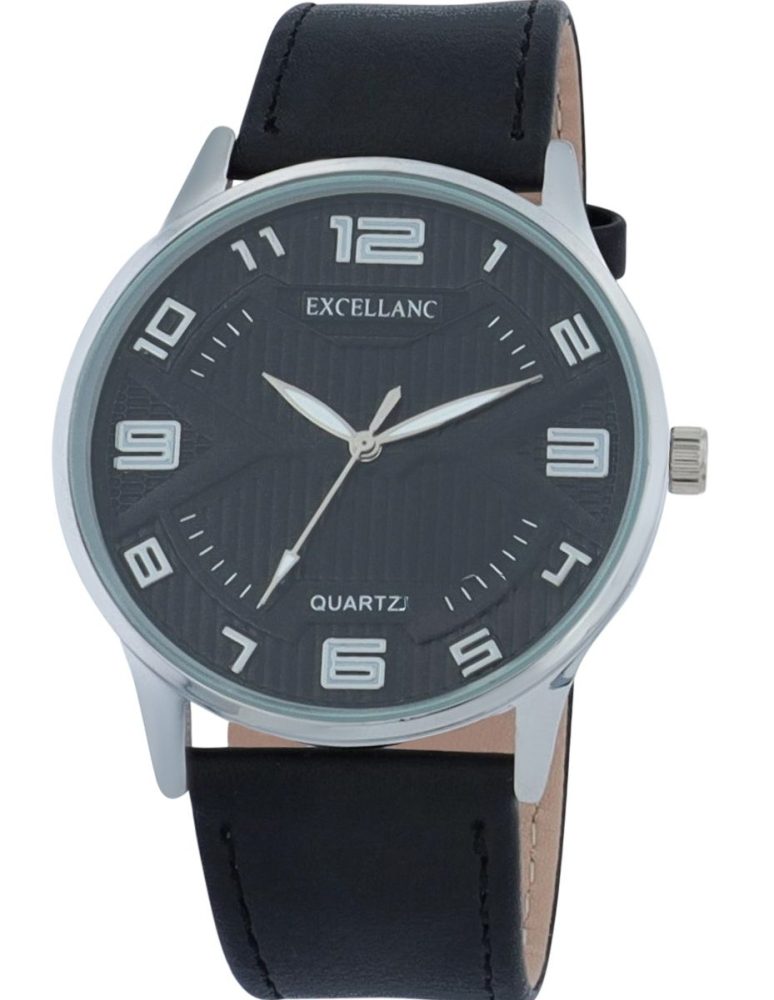 O nosso relógio Excellanc para homem destaca-se dos outros relógios graças à sua aparência extraordinária. Particularmente digno de nota é o mostrador especialmente projetado, que possui decorações em forma de linha e detalhes em relevo. O movimento preciso de quartzo não só garante uma cronometragem precisa, mas também promete confiabilidade duradoura. Com diâmetro de caixa de 42 mm e altura de caixa de 11 mm, o relógio masculino tem uma figura delicada. O comprimento total da bracelete em pele sintética é de 24,5 cm e com largura de banda de 22 mm é confortável de usar. A robusta caixa de metal combinada com uma tampa da base em aço inoxidável garante estabilidade e durabilidade sob as demandas diárias de uma vida ativa.