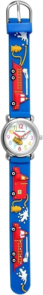 O relógio de pulso infantil analógico de 3 ponteiros da Excellanc possui o movimento de quartzo PC21 de alta qualidade. A pulseira de silicone tem 14 mm de largura na alça e pode ser aberta e fechada com uma fivela. O comprimento total do relógio é de 20 cm. A caixa de metal com vidro mineral tem um diâmetro de 27 mm e uma altura de 10 mm. O fundo da caixa é feito de aço inoxidável. A pulseira de borracha colorida é decorada com vários motivos dos bombeiros e garante conforto de uso. O mostrador é branco e impresso com números coloridos. Os ponteiros das horas e dos minutos são laranja neon e ajudam você a ler as horas. O ponteiro especial dos segundos consiste em uma placa fina e transparente que traz impressa um hidrante.