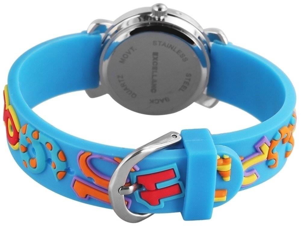 O relógio de pulso infantil analógico de 3 ponteiros da Excellanc possui o movimento de quartzo PC21 de alta qualidade. A pulseira de silicone tem 14 mm de largura na alça e pode ser aberta e fechada com uma fivela. O comprimento total do relógio é de 20 cm. A caixa de metal com vidro mineral tem um diâmetro de 27 mm e uma altura de 10 mm. O fundo da caixa é feito de aço inoxidável. A pulseira de borracha colorida garante que seja confortável de usar. Os números de um a doze podem ser encontrados nele e criam uma bela conexão com o mostrador. Este é branco e impresso com doze números coloridos. Além…