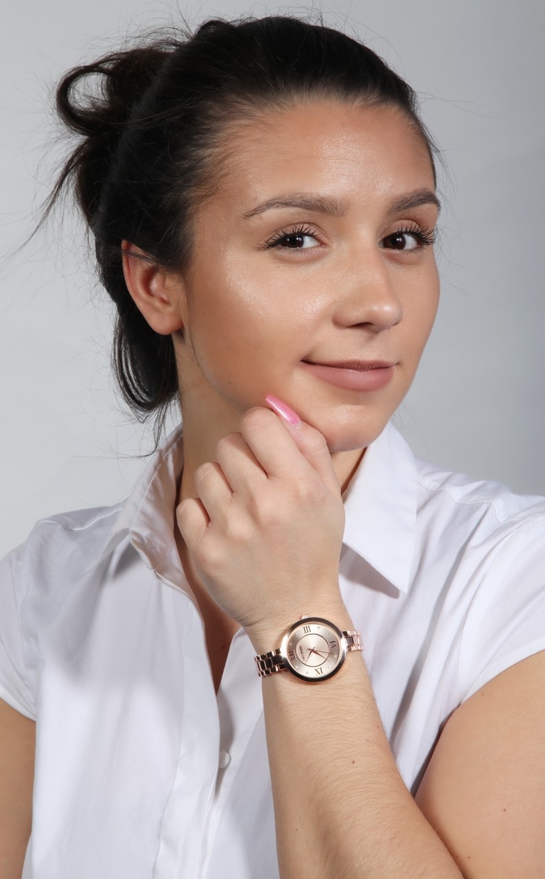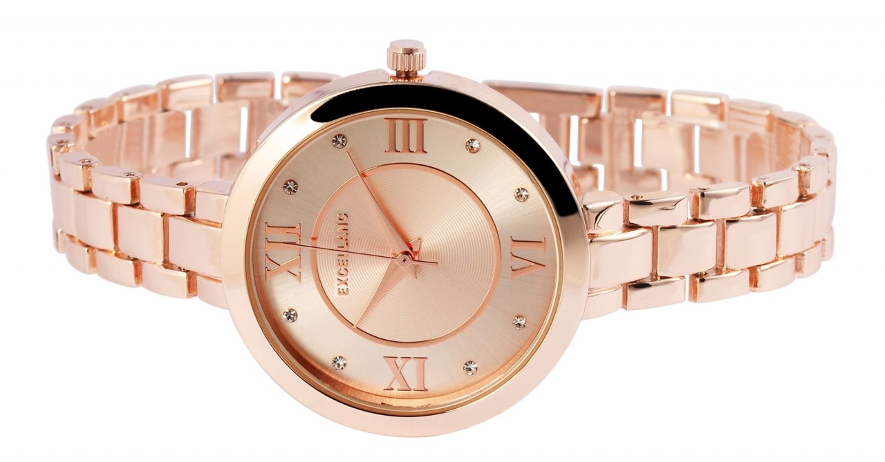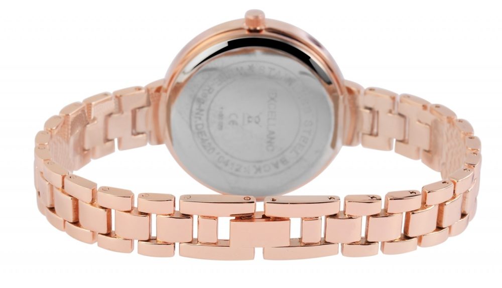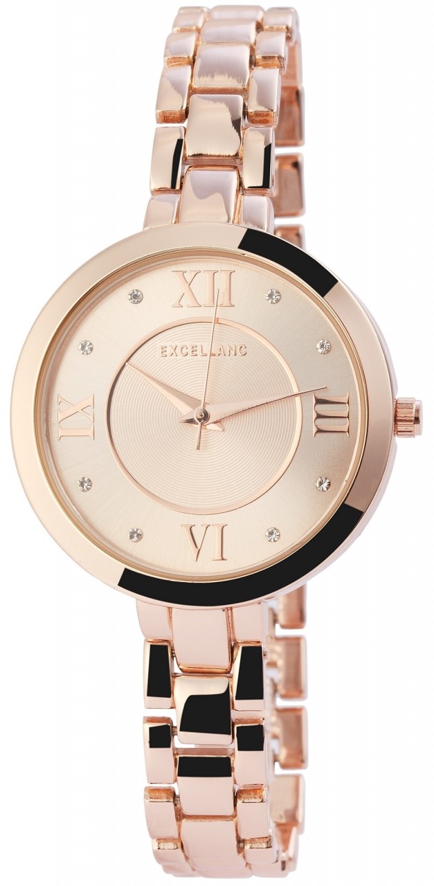 O relógio de pulso analógico de 3 ponteiros para senhora da Excellanc possui um movimento de quartzo de alta qualidade. O comprimento total do relógio é de 19,5 cm. A bracelete de metal com liga de zinco tem 10 mm de largura na alça e pode ser aberta e fechada com um fecho de clipe. A caixa de metal em liga de zinco com vidro mineral tem um diâmetro de 33 mm e uma altura de 8 mm. O mostrador é decorado com grandes algarismos romanos colocados nas doze, três, seis e nove horas, conferindo ao relógio um aspecto muito especial.