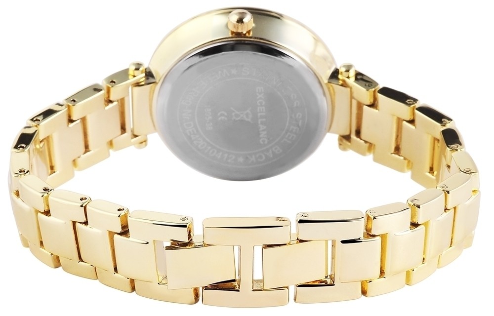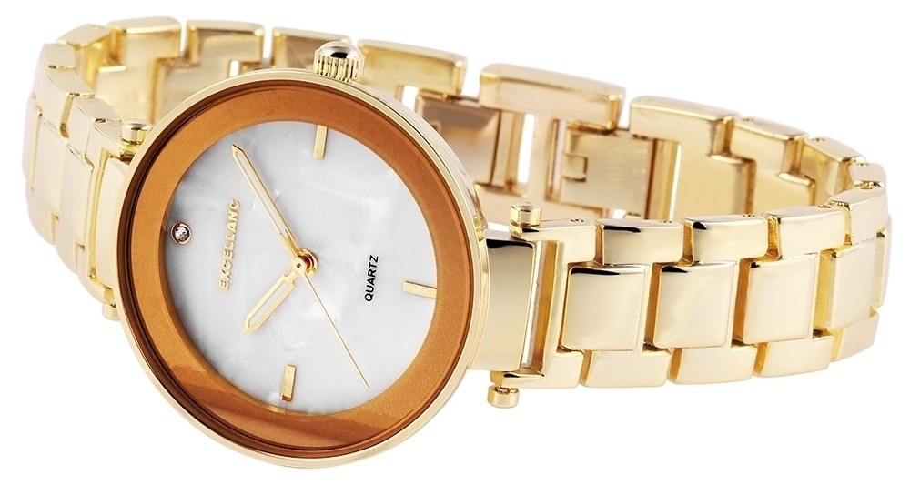O relógio de senhora analógico da marca Excellanc possui um movimento de quartzo de alta qualidade. A bracelete metálica tem 14 mm de largura e abre-se com um fecho de correr. O comprimento total é de 19 cm. A caixa metálica com vidro mineral mede 32 mm e tem 8 mm de altura. A tampa da caixa é feita de aço inoxidável. O acabamento em cristal no mostrador é também um destaque visual.