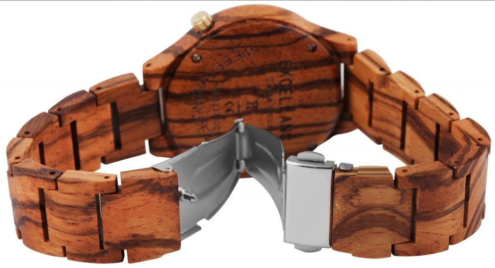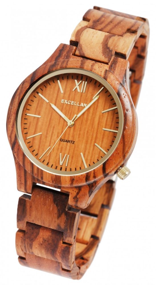 O relógio de pulso analógico de 3 ponteiros para senhora da marca Excellanc possui um movimento de quartzo de alta qualidade. A bracelete em madeira tem 12 mm de largura na extremidade e pode ser aberta e fechada com um fecho desdobrável em aço inoxidável. O comprimento total do relógio é de 22 cm, mas pode ser encurtado se necessário graças aos elementos amovíveis. A caixa, também em madeira, com fundo em madeira da mesma cor e vidro mineral, tem um diâmetro de 40 mm e uma altura de 11 mm. Um destaque visual é o vidro mineral, que tem um rebordo espelhado no bordo exterior. Juntamente com a coroa de cor coordenada às quatro horas, confere ao relógio um aspeto elegante. O mostrador também é feito de madeira. Os ponteiros e os marcadores das horas condizem com a cor e completam harmoniosamente o aspeto geral. Outra caraterística especial são os submostradores revestidos a Superluminova.