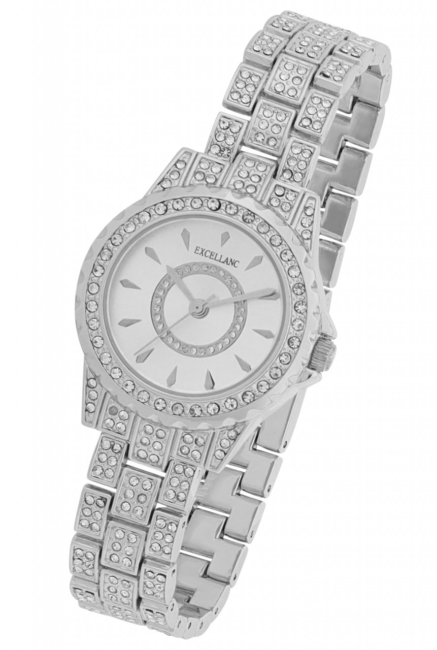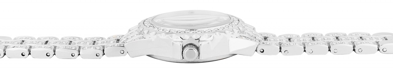 Relógio feminino de 3 ponteiros com caixa redonda (Ø 29 mm) refinado com inúmeras pedras brilhantes na caixa e na pulseira de metal. A pulseira de metal, que tem 13 mm de largura na haste, é fechada com segurança por um fecho de pressão. O relógio, com um comprimento total de 20 cm, pode ser ajustado individualmente ao seu pulso. O mostrador com índice de pontos em forma de diamante é protegido por um vidro mineral. Graças ao preciso movimento de quartzo PC21, a hora exata é sempre garantida. Faça uma declaração brilhante na próxima festa.