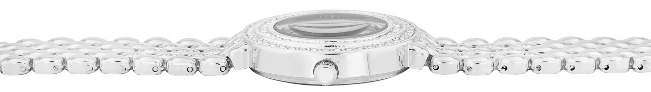 Este relógio feminino é mais do que apenas um relógio, é uma joia no pulso de toda mulher. Uma cascata de pedras brilhantes estende-se ao redor da moldura do elegante relógio até os quatro primeiros elos da pulseira em formato de gota, artisticamente trabalhada. No interior, há um movimento de quartzo de alta qualidade, protegido por um vidro mineral na parte superior e um fundo de caixa de aço inoxidável na parte inferior. O diâmetro e a altura da caixa do relógio são 33 mm e 9 mm, respetivamente. O mostrador é equipado com algarismos arábicos e um índice de linha. O visual típico de 3 ponteiros do relógio complementa o design clássico e elegante desta joia, cujo comprimento total é de 20,5 cm e largura de pulseira de 11 mm.