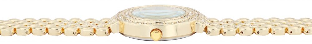 Este relógio feminino é mais do que apenas um relógio, é uma joia no pulso de toda mulher. Uma cascata de pedras brilhantes estende-se ao redor da moldura do elegante relógio até os quatro primeiros elos da pulseira em formato de gota, artisticamente trabalhada. No interior, há um movimento de quartzo de alta qualidade, protegido por um vidro mineral na parte superior e um fundo de caixa de aço inoxidável na parte inferior. O diâmetro e a altura da caixa do relógio são 33 mm e 9 mm, respetivamente. O mostrador é equipado com algarismos arábicos e um índice de linha. O visual típico de 3 ponteiros do relógio complementa o design clássico e elegante desta joia, cujo comprimento total é de 20,5 cm e largura de pulseira de 11 mm.