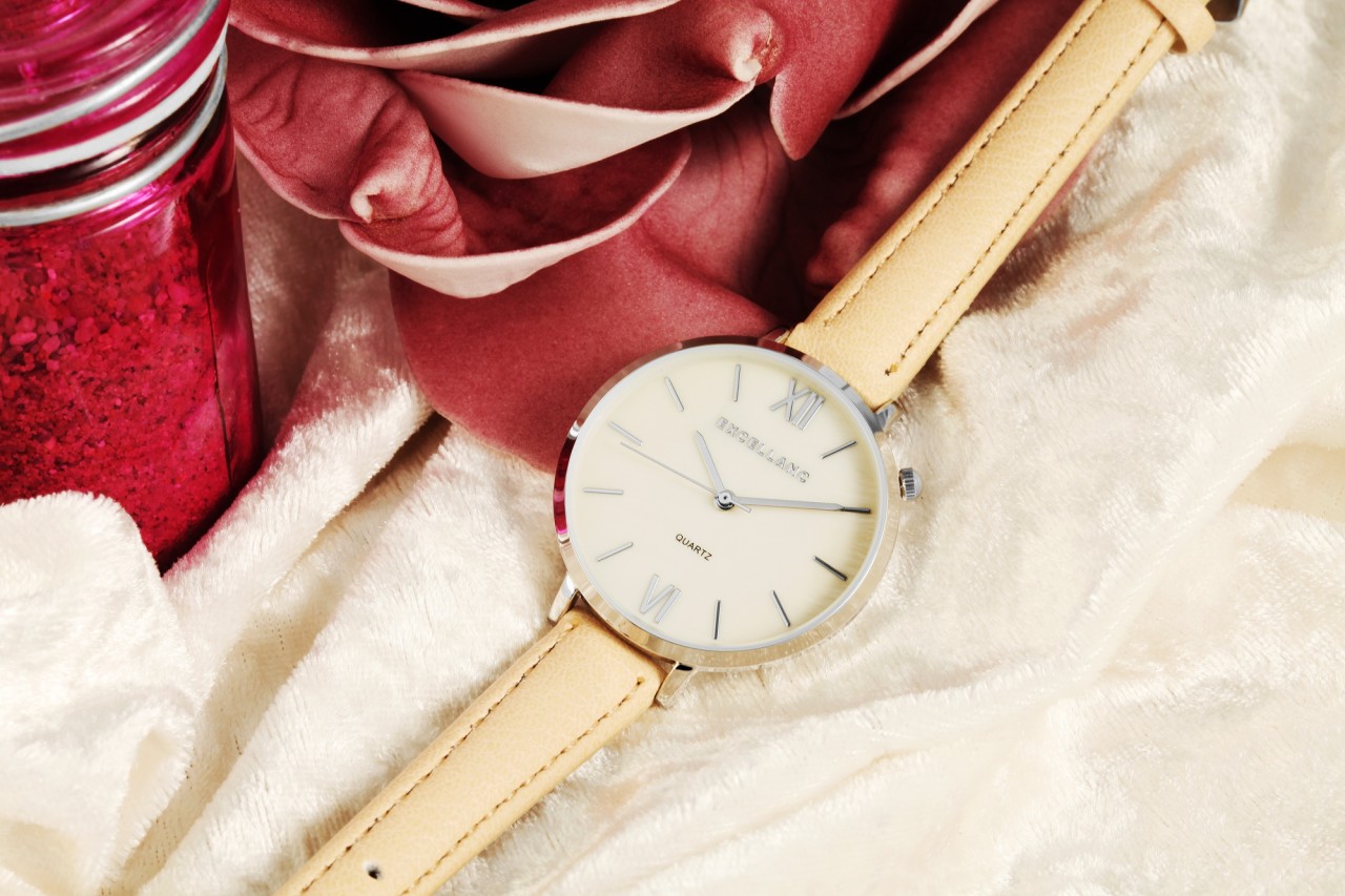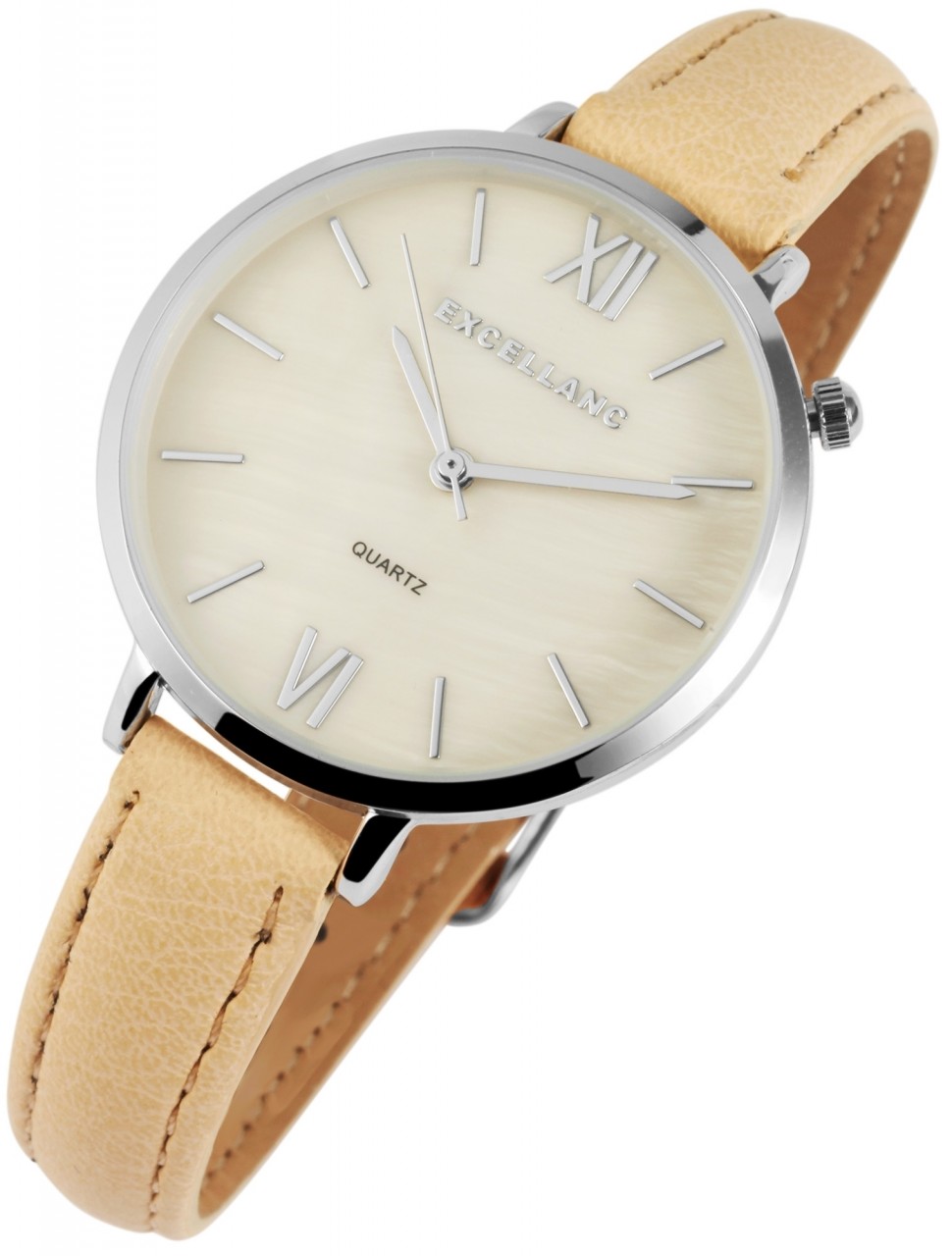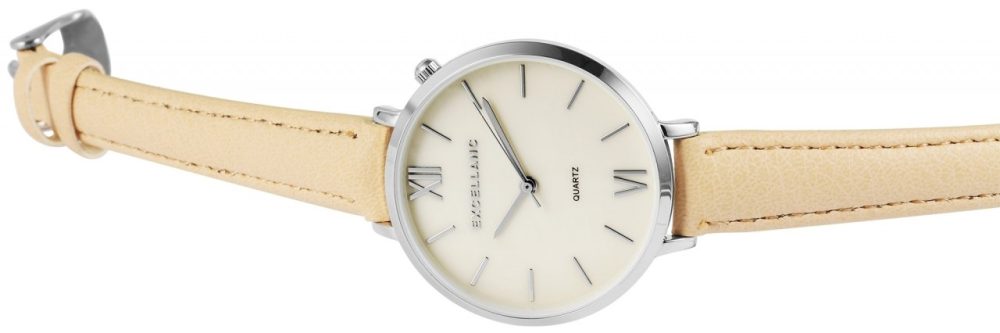 O relógio analógico feminino da Excellanc possui um movimento de quartzo de alta qualidade. O nome do modelo é EX0116. A bracelete de pele sintética tem 12 mm de largura e abre com uma fivela. O comprimento total é de 18,5 cm. A caixa de metal com vidro mineral tem dimensão de 35 mm e altura de caixa de 7 mm. A tampa da caixa é feita de aço inoxidável.