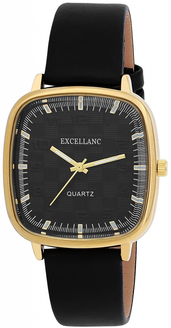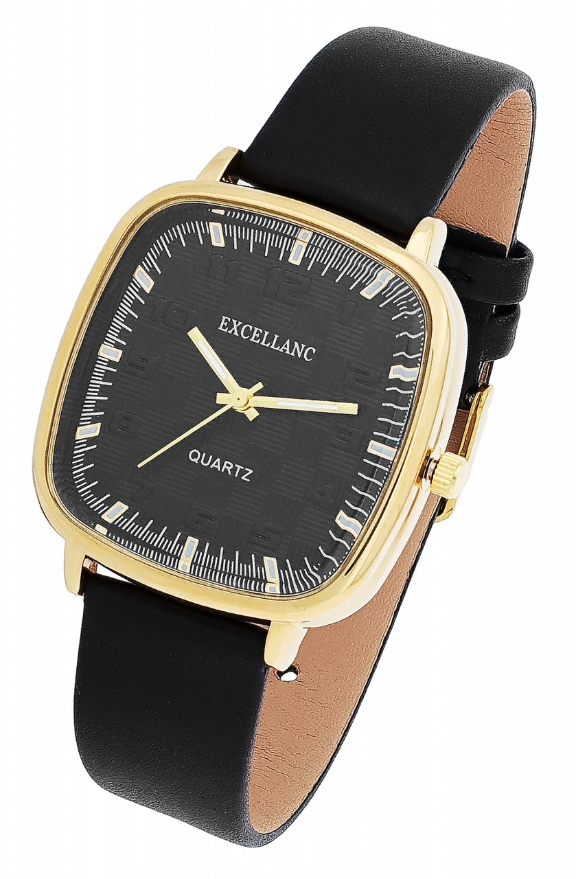 Linhas claras e design lúdico, este é o relógio feminino da Excellanc. Equipado com um preciso movimento de quartzo SL68 e um design de 3 ponteiros, este relógio impressiona com sua cronometragem confiável. A pulseira de couro sintético de alta qualidade (largura de 18 mm) garante um conforto agradável e é presa com segurança ao pulso com uma fivela de pino clássica. Com um comprimento total de 23,5 cm, o relógio oferece ajuste flexível. A caixa angular medindo 28 x 26 x 10 mm dá ao relógio um formato marcante, enquanto o mostrador com estrutura xadrez e algarismos arábicos levemente elevados habilmente solta o relógio. Complementado por um índice de linha, este relógio é uma mistura de marcante, moderno e divertido. Um verdadeiro chamariz para seu pulso.