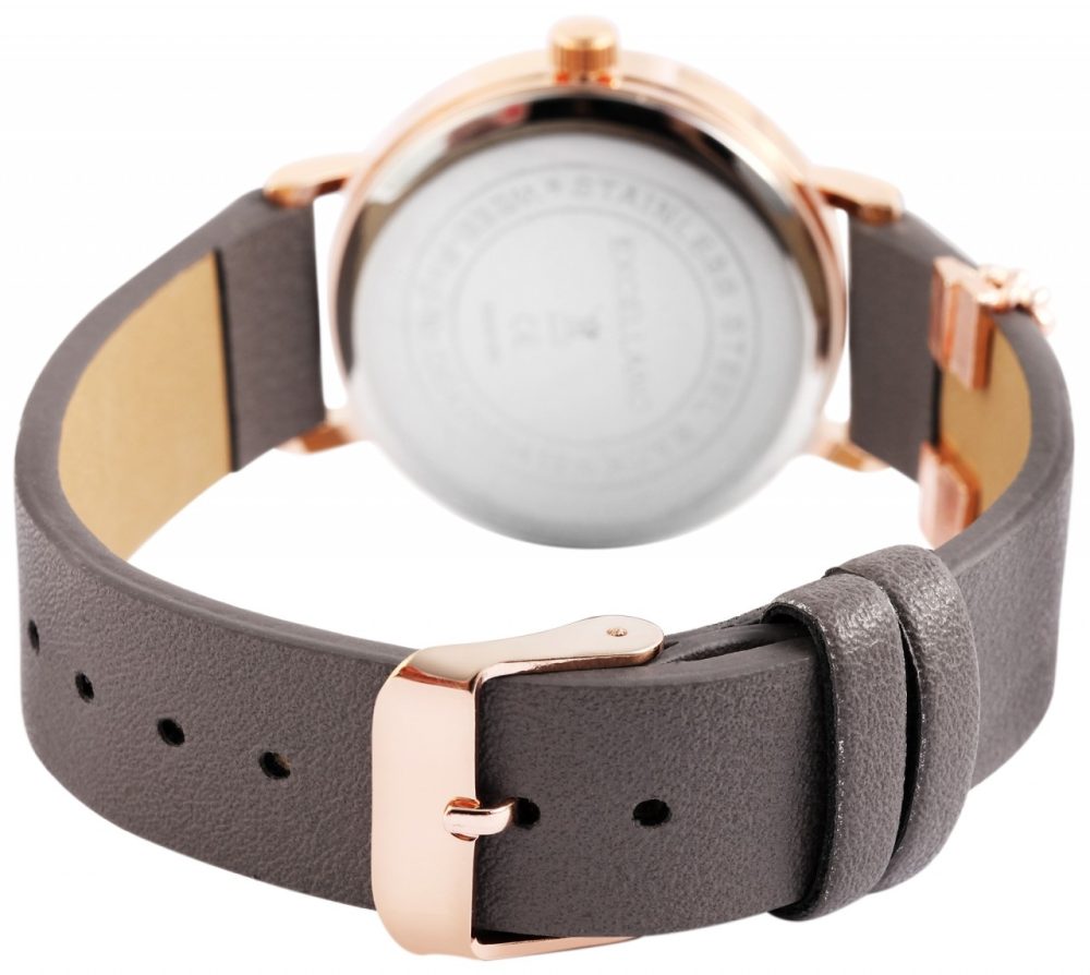 O relógio de pulso analógico de 3 ponteiros para senhora da Excellanc possui o movimento de quartzo Japan PC21 de alta qualidade. A bracelete de pele sintética tem 16 mm de largura na alça e pode ser aberta e fechada com uma fivela. Também é decorado com dois elegantes elementos metálicos em liga de zinco. O comprimento total do relógio é de 22,5 cm. A caixa de metal com vidro mineral tem um diâmetro de 33 mm e uma altura de 8 mm. O fundo da caixa é feito de aço inoxidável. O mostrador em madrepérola brilhante torna o relógio um atrativo especial e confere-lhe um charme único. Os ponteiros e índices têm a mesma cor da caixa e completam a aparência geral harmoniosa do relógio de pulso moderno.