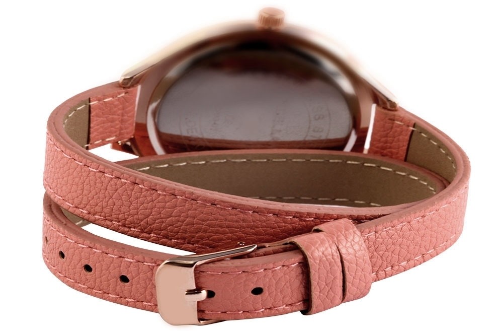 O relógio de pulso analógico de 3 ponteiros para senhora da marca Excellanc possui um movimento de quartzo de alta qualidade. A bracelete simples em imitação de pele tem 12 mm de largura na extremidade e pode ser aberta e fechada com uma fivela de pino clássica. O comprimento total do elegante relógio de pulso é de 38 cm. A bracelete de relógio extra-longa pode ser enrolada duas vezes à volta do pulso, tornando o relógio num atrativo muito especial. A caixa metálica com vidro mineral tem um diâmetro de 42 mm e uma altura de 9 mm. O fundo da caixa é feito de aço inoxidável.