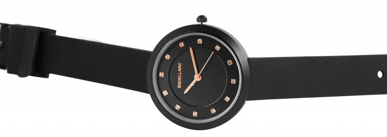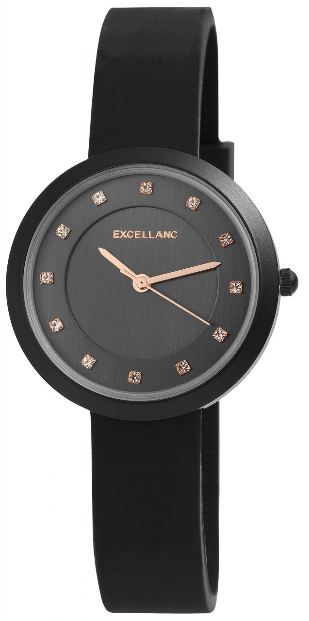 Relógio feminino Excellanc com Bracelete de silicone, com 12 mm de largura. Comprimento total de 21.5 cm.