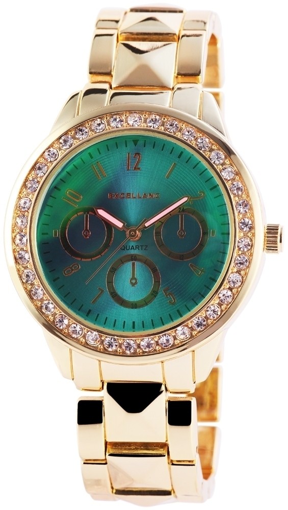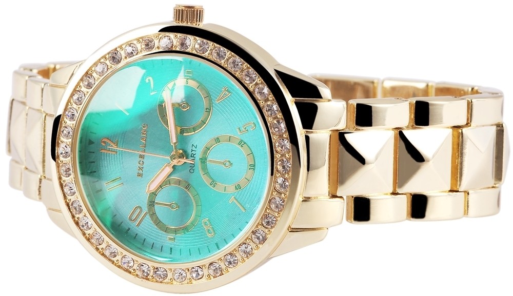 O relógio analógico feminino da Excellanc possui um movimento de quartzo de alta qualidade. A pulseira de metal tem 18 mm de largura e abre com um fecho de clipe. O comprimento total é de 19 cm. A caixa de metal com vidro mineral tem dimensão de 39 mm e altura de caixa de 11 mm. O case é aprimorado com detalhes em cristal. A tampa da caixa é feita de aço inoxidável. Outra característica é: Chronolook.