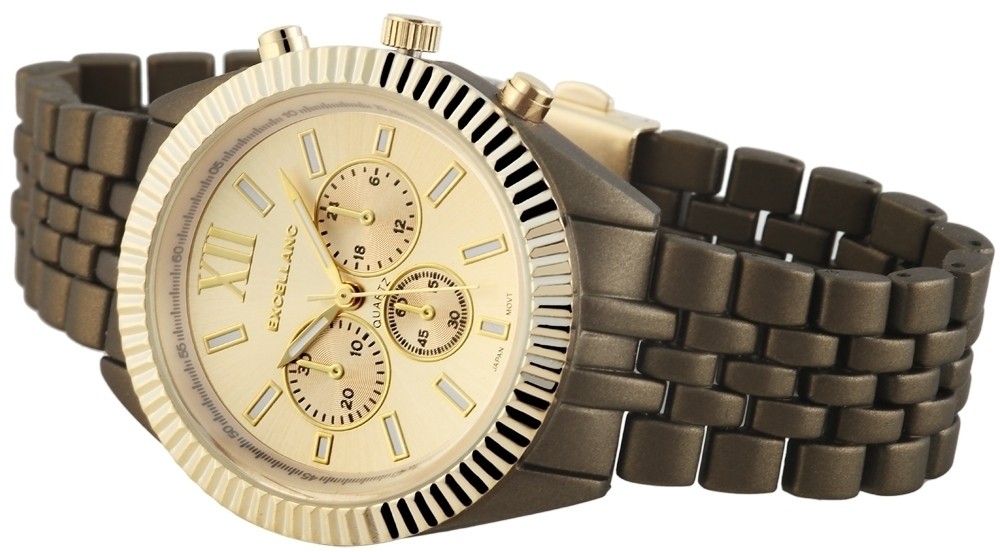 O relógio analógico feminino da Excellanc possui um movimento de quartzo de alta qualidade. A pulseira de metal tem 19 mm de largura e abre com um fecho dobrável em aço inoxidável. O comprimento total é de 17 cm. A caixa de metal com vidro mineral tem dimensão de 39 mm e altura de caixa de 12 mm. A tampa da caixa é feita de aço inoxidável.