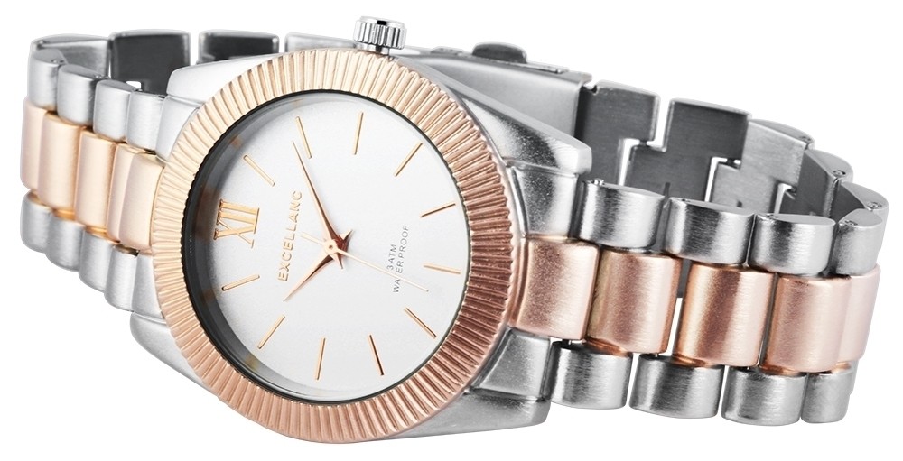 O relógio analógico feminino da Excellanc possui um movimento de quartzo de alta qualidade. A pulseira de metal tem 20 mm de largura e abre com um fecho dobrável em aço inoxidável. O comprimento total é de 18 cm. A caixa de metal com vidro mineral tem dimensão de 36 mm e altura de caixa de 9 mm. A tampa da caixa é feita de aço inoxidável. O relógio é testado com pressão de 3 ATM.