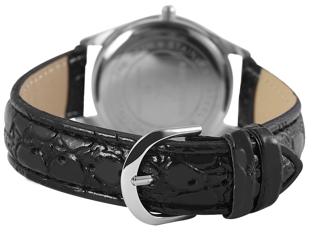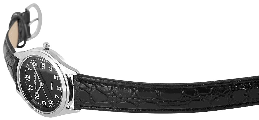 O relógio de pulso analógico de 3 ponteiros para senhora da Excellanc possui um movimento de quartzo de alta qualidade. A pulseira em imitação de couro com relevo de crocodilo e aparência de laca brilhante tem 18 mm de largura na alça e estreita 2 mm, de modo que a alça do fecho tem 16 mm. O interior da pulseira é feito de couro genuíno, o que a torna confortável de usar. O relógio pode ser aberto e fechado com uma fivela. O comprimento total é de 24 cm. A caixa de metal com vidro mineral tem um diâmetro de 36 mm e uma altura de 9 mm. O fundo da caixa é feito de aço inoxidável. O relógio também possui uma exibição de data às três horas. O mostrador simples completa a aparência do modelo de relógio clássico, os ponteiros e os índices têm cores contrastantes para que você possa ler as horas rapidamente.