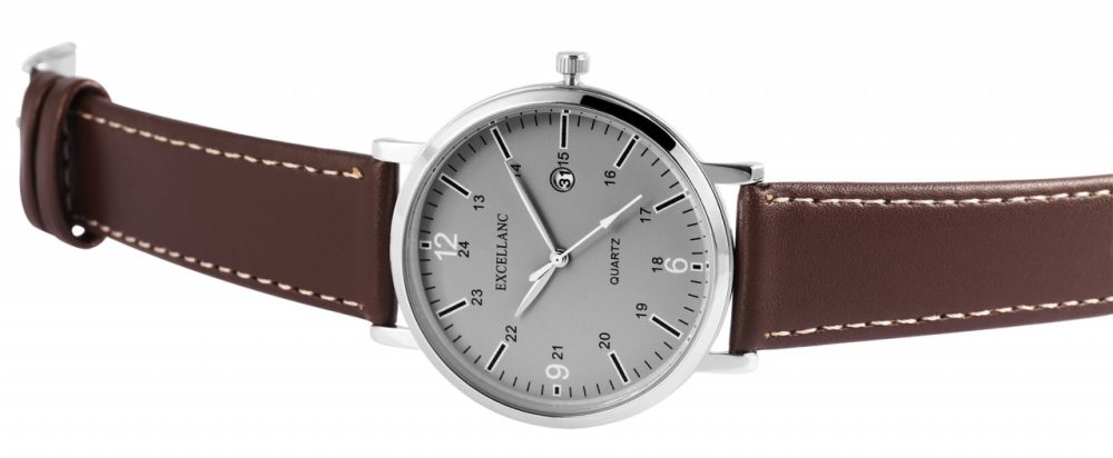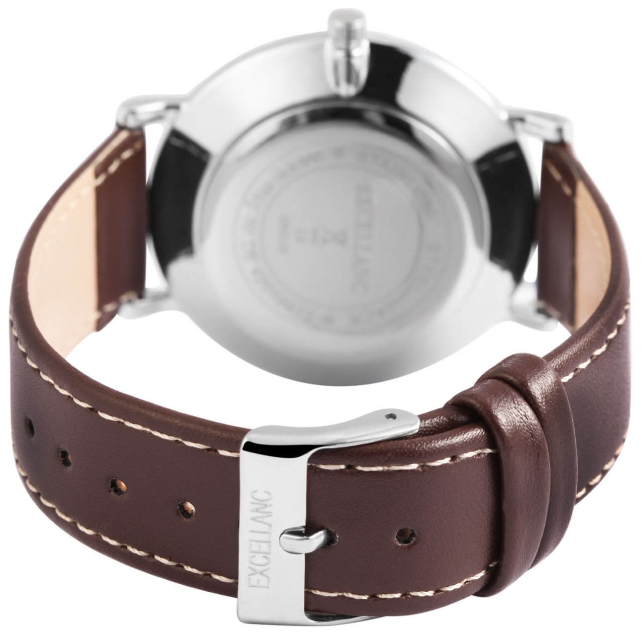 O relógio de pulso analógico masculino de 3 ponteiros da Excellanc possui um movimento de quartzo de alta qualidade. A pulseira plana de imitação de couro tem 20 mm de largura na alça e pode ser aberta e fechada com uma fivela. O comprimento total do relógio é de 25 cm. A caixa de metal com vidro mineral tem um diâmetro de 41 mm e uma altura de 9 mm. O fundo da caixa é feito de aço inoxidável. O relógio também possui uma exibição de data às três horas, para que você tenha sempre uma visão direta não apenas da hora atual, mas também da data atual do calendário. No geral, o relógio masculino é um companheiro clássico e atemporal que se adapta a todas as ocasiões.