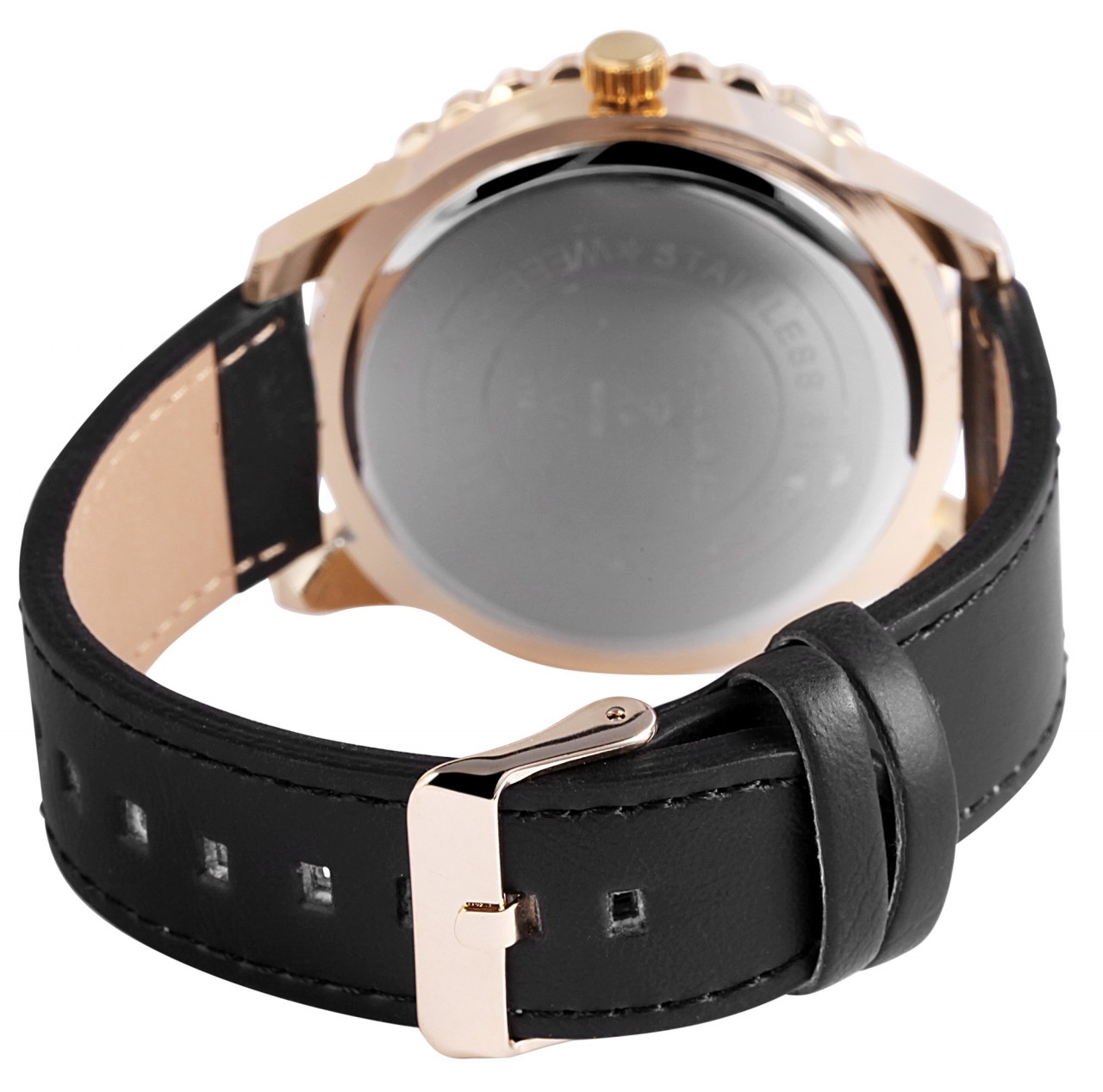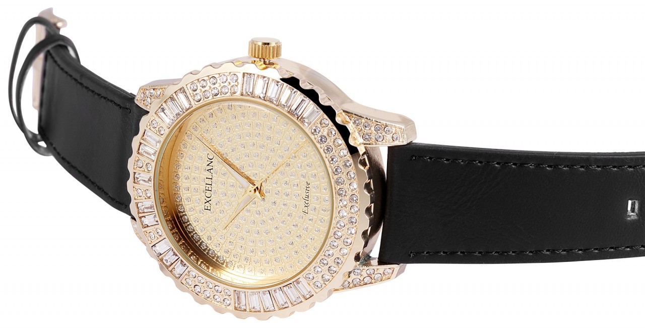 O relógio analógico feminino da Excellanc possui um movimento de quartzo de alta qualidade. A pulseira em imitação de couro tem 22 mm de largura e abre com uma fivela. O comprimento total é de 24 cm. A caixa de metal com vidro mineral tem dimensão de 47 mm e altura de caixa de 14 mm. O case é aprimorado com detalhes em cristal. A tampa da caixa é feita de metal. O acabamento em cristal no mostrador também é um destaque visual.