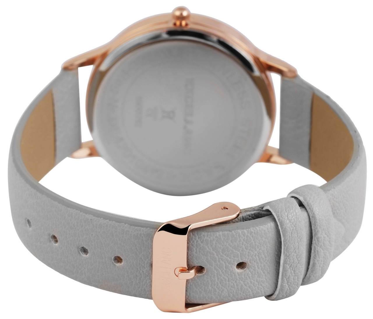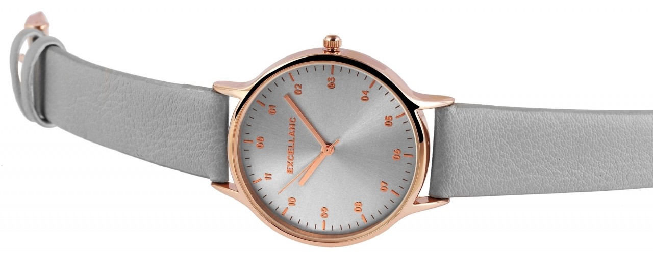 O relógio de pulso analógico de 3 ponteiros para senhora da Excellanc possui um movimento de quartzo de alta qualidade. A pulseira de imitação de couro tem 18 mm de largura na alça e estreita 2 mm, de modo que a alça do fecho tem 16 mm. O relógio pode ser aberto e fechado com uma fivela. O comprimento total do relógio é de 23 cm. A caixa de metal com vidro mineral tem um diâmetro de 38 mm e uma altura de 9 mm. O fundo da caixa é feito de aço inoxidável. O mostrador é monocromático e os ponteiros e índices são da mesma cor. Eles combinam bem com a aparência geral do relógio.