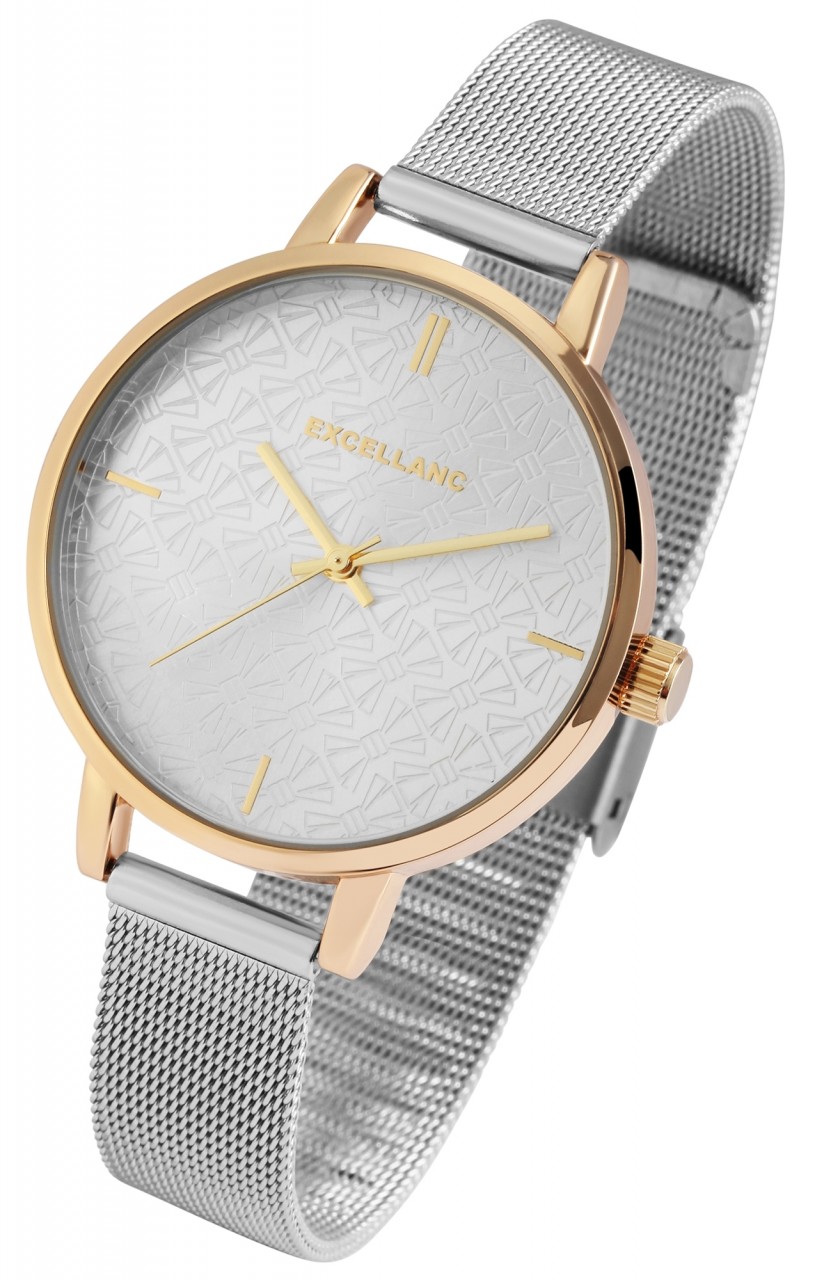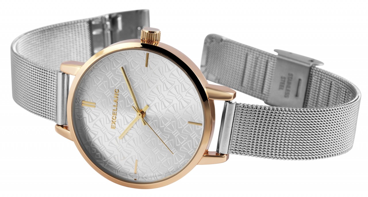 O relógio analógico de 3 ponteiros para senhora da Excellanc possui o movimento de quartzo PC21 de alta qualidade. A faixa de malha de aço inoxidável tem 14 mm de largura. Pode ser aberto e fechado com a ajuda de um fecho de gancho de aço inoxidável de fácil ajuste e o comprimento total do relógio é de 23 cm. A caixa de metal com vidro mineral tem um diâmetro de 38 mm e uma altura de 9 mm. O fundo da caixa prateado é feito de aço inoxidável. No mostrador há uma divisão de índice de linha em “3”, “6”, “9” e “12” horas e os ponteiros têm a mesma cor dos índices. O destaque fica por conta do mostrador decorado onde podem ser vistos diversos pequenos laços. Este relógio de design intemporal é adequado como presente para o Natal, Dia dos Namorados, Dia das Mães ou aniversários, por exemplo.