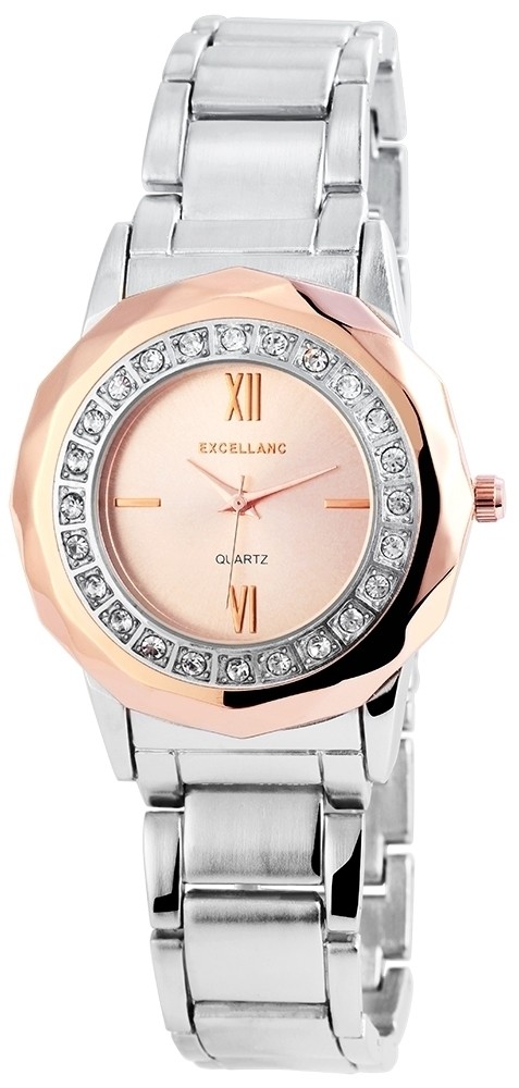 O relógio analógico feminino da Excellanc possui um movimento de quartzo de alta qualidade. A pulseira de metal tem 18 mm de largura e abre com um fecho dobrável em aço inoxidável. O comprimento total é de 20 cm. A caixa de metal com vidro mineral tem dimensão de 39 mm e altura de caixa de 11 mm. O case é aprimorado com detalhes em cristal. A tampa da caixa é feita de aço inoxidável.
