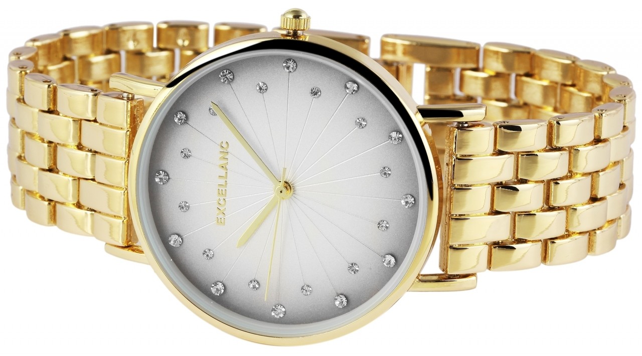 O relógio de pulso analógico para senhora da Excellanc possui um movimento de quartzo de alta qualidade. A pulseira de metal tem 18 mm de largura  A caixa de metal com vidro mineral tem um diâmetro de 36 mm e uma altura de 8 mm. O fundo da caixa é feito de aço inoxidável.
