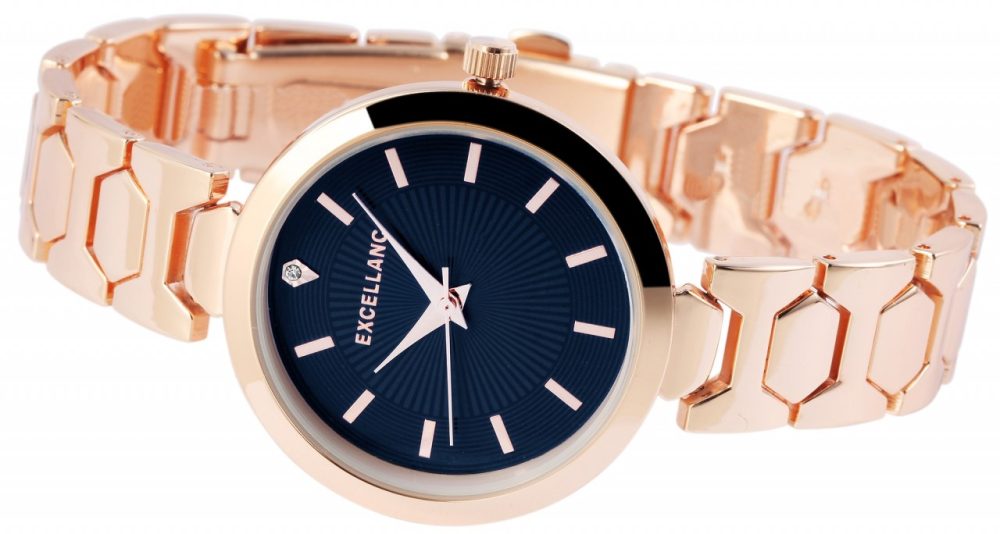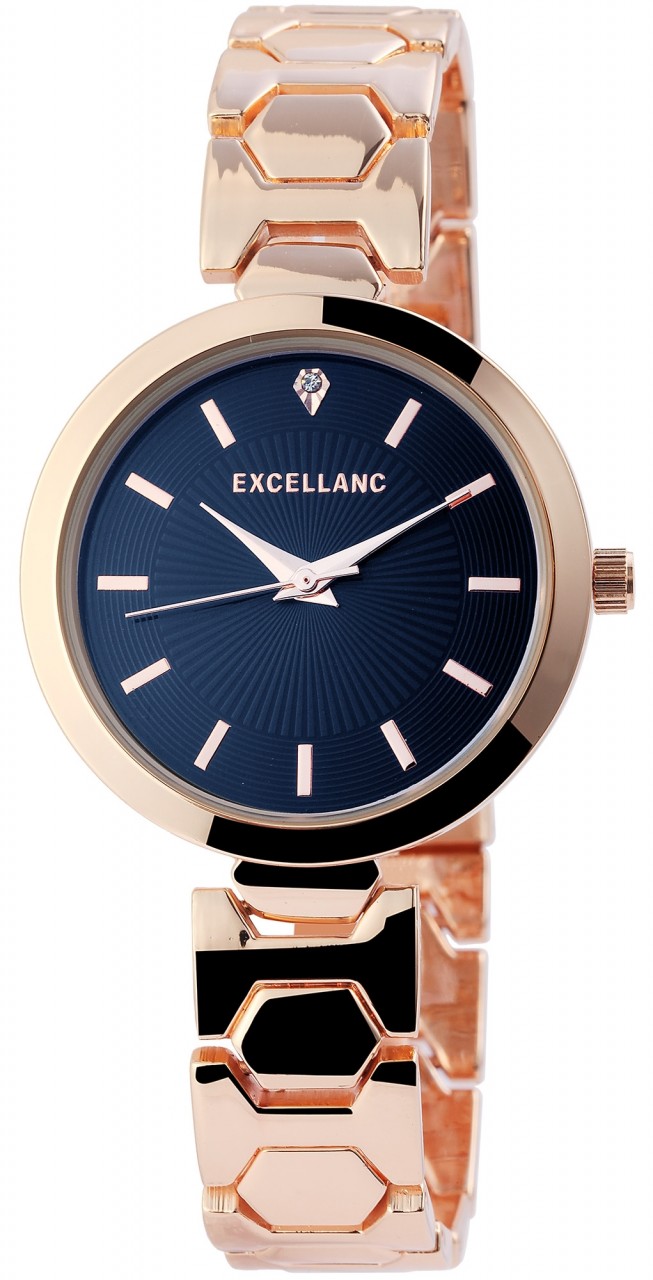 O relógio analógico feminino da Excellanc possui um Japan PC21. O nome do modelo é EX0186. A pulseira de metal tem 14 mm de largura e abre com um fecho dobrável em aço inoxidável. O comprimento total é de 18 cm. A caixa de metal com vidro mineral tem dimensão de 34 mm e altura de caixa de 8 mm. A tampa da caixa é feita de aço inoxidável. O acabamento em cristal no mostrador também é um destaque visual.