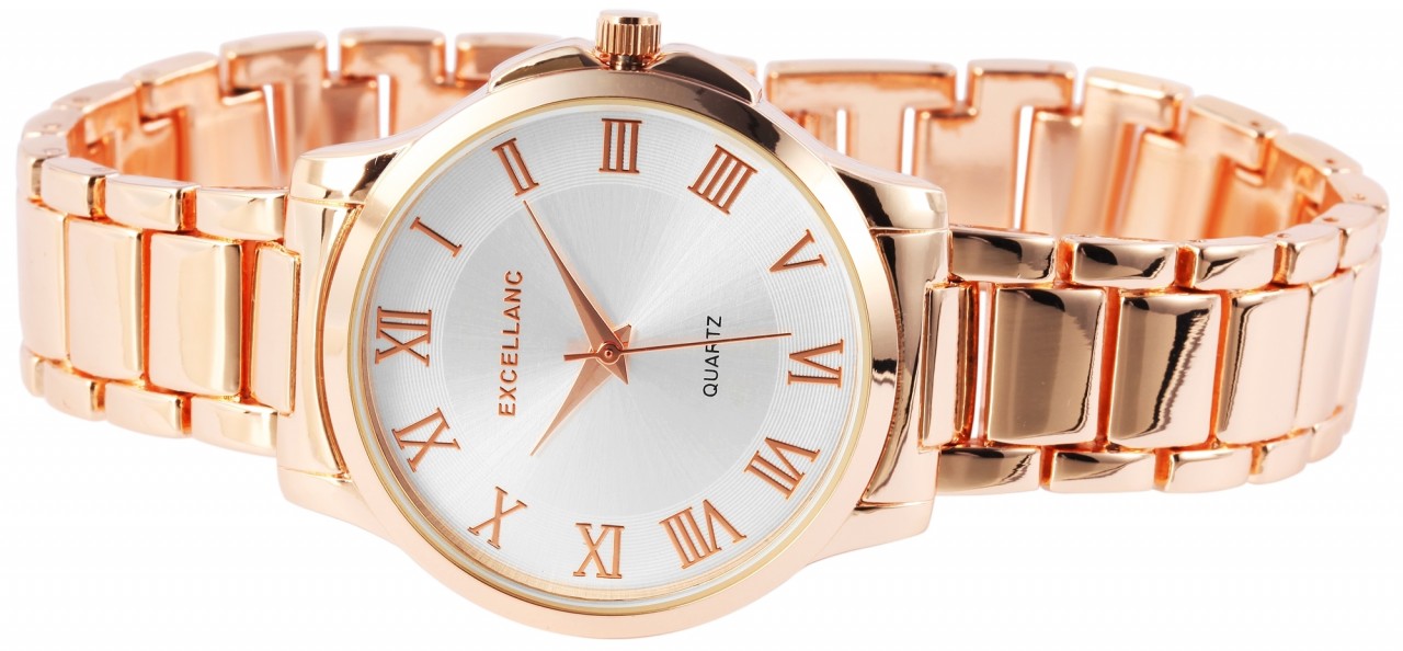 O relógio analógico feminino da Excellanc possui um Japan PC21. O nome do modelo é EX0192. A pulseira de metal tem 16 mm de largura e abre com um fecho de clipe. O comprimento total é de 18 cm. A caixa de metal com vidro mineral tem dimensão de 36 mm e altura de caixa de 9 mm. A tampa da caixa é feita de aço inoxidável.