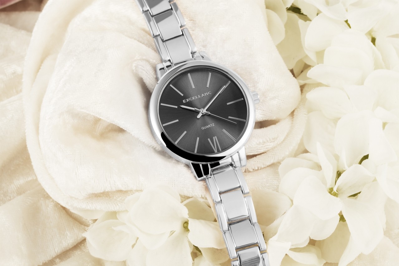 O relógio analógico feminino da Excellanc possui um movimento de quartzo de alta qualidade. O nome do modelo é EX0113. A pulseira de metal tem 13 mm de largura e abre com um fecho de clipe. O comprimento total é de 16,5 cm. A caixa de metal com vidro mineral tem dimensão de 37 mm e altura de caixa de 10 mm. A tampa da caixa é feita de aço inoxidável.