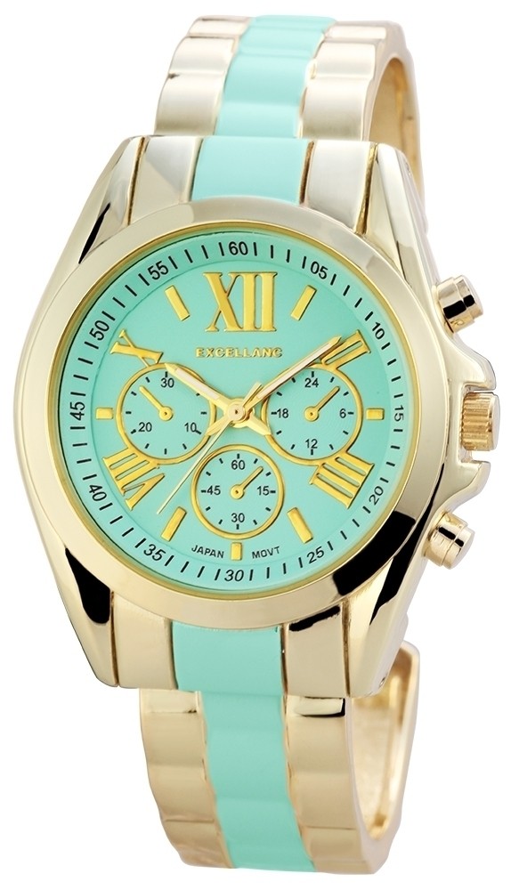 O relógio analógico feminino da Excellanc possui um movimento de quartzo de alta qualidade. A pulseira com fecho de metal é usada como fecho no pulso. O comprimento total é de 19 cm. A caixa de metal com vidro mineral tem dimensão de 36 mm e altura de caixa de 9 mm. A tampa da caixa é feita de aço inoxidável. Outra característica é: Chronolook.