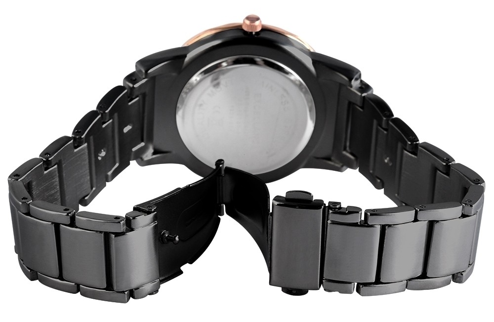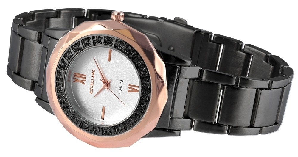 O relógio analógico feminino da Excellanc possui um movimento de quartzo de alta qualidade. A pulseira de metal tem 18 mm de largura e abre com um fecho dobrável em aço inoxidável. O comprimento total é de 20 cm. A caixa de metal com vidro mineral tem dimensão de 39 mm e altura de caixa de 11 mm. O case é aprimorado com detalhes em cristal. A tampa da caixa é feita de aço inoxidável.