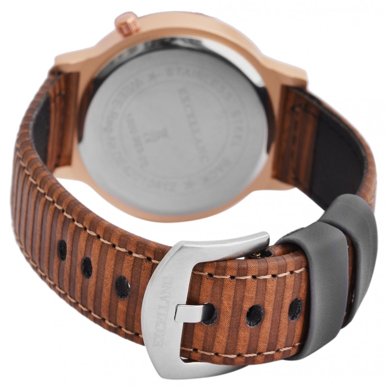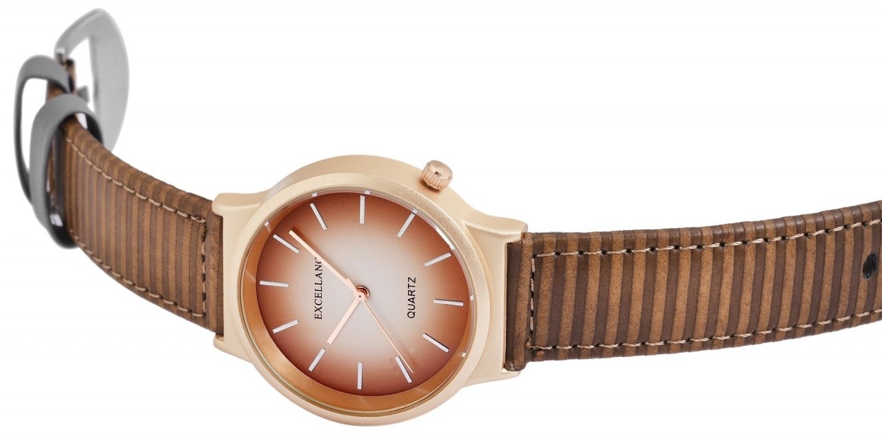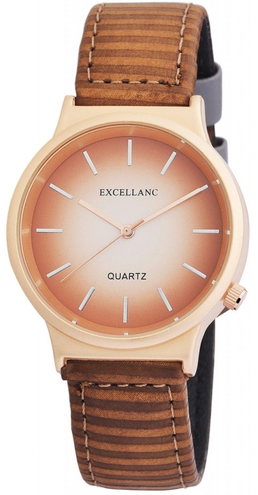 O relógio analógico feminino da Excellanc possui um movimento de quartzo de alta qualidade. O nome do modelo é EX0028. A pulseira em imitação de couro tem 18 mm de largura e abre com uma fivela. O comprimento total é de 19 cm. A caixa de metal com vidro mineral tem dimensão de 38 mm e altura de caixa de 9 mm. A tampa da caixa é feita de aço inoxidável.