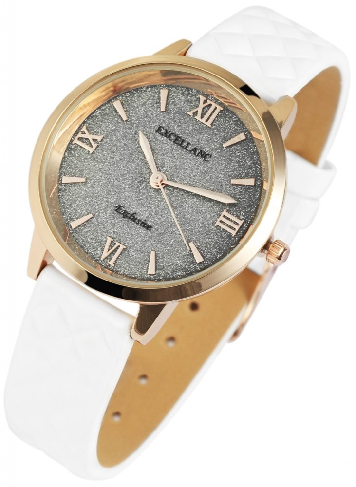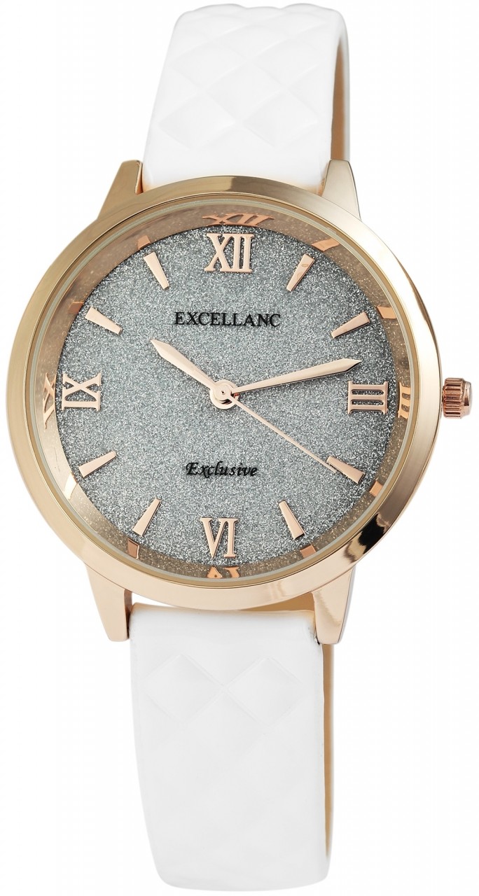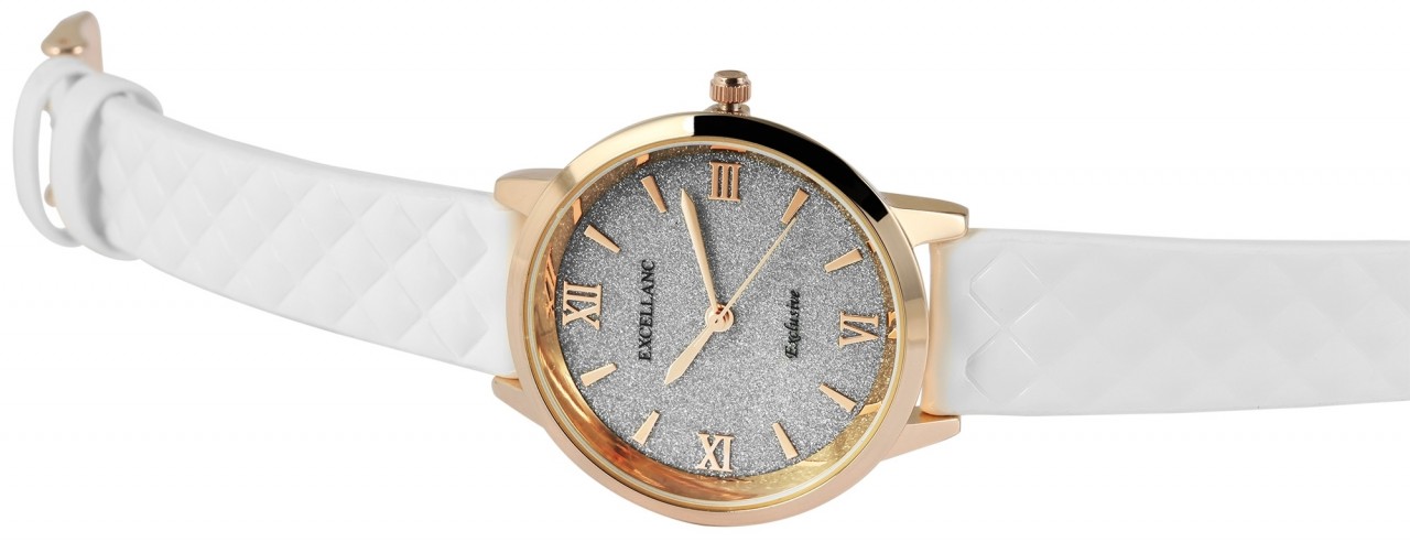 O relógio analógico feminino da Excellanc possui um Japan PC21. O nome do modelo é EX0145. A pulseira em imitação de couro tem 16 mm de largura e abre com uma fivela. O comprimento total é de 19,5 cm. A caixa de metal com vidro mineral tem dimensão de 37 mm e altura de caixa de 8 mm. A tampa da caixa é feita de aço inoxidável. O acabamento em cristal no mostrador também é um destaque visual.
