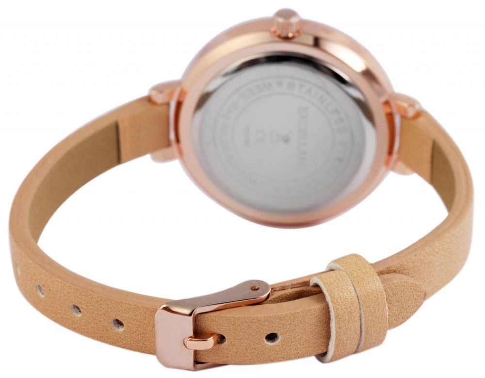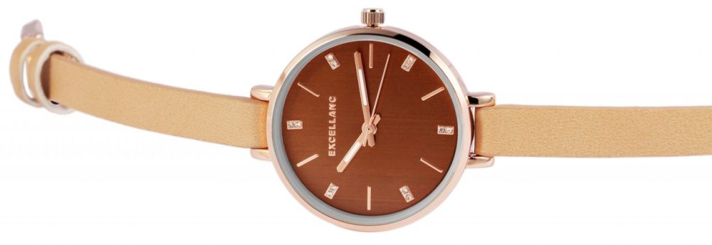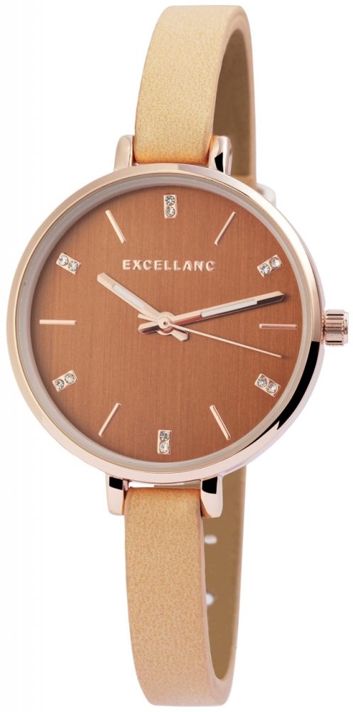 O relógio de pulso analógico feminino da Excellanc possui um movimento de quartzo de alta qualidade. A pulseira em imitação de couro tem 8 mm de largura na alça e pode ser aberta e fechada com uma fivela. A caixa de metal em liga de zinco com vidro mineral tem um diâmetro de 34 mm e uma altura de 8 mm. O comprimento total do relógio é de 22 cm e o fundo da caixa é feito de aço inoxidável. Um destaque especial são os índices, alguns dos quais decorados com brilhantes pedras simil, e o mostrador forrado mate, que confere ao relógio um aspecto elegante.